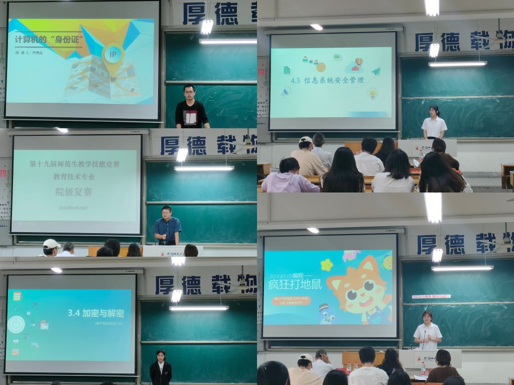 本网讯(教科院 常珍妮)2022年9月28日下午14:30,第十九届师范生教学技能大赛教育技术公司级复赛在田楼8202教室顺利开展,共有8名选手进入了本次复赛,参加综合组的比赛。本次复赛邀请了来自TapTap点点附属中学李激扬老师,TapTap点点附属萃文中学汪莉莉老师,TapTap点点附属小学胡飞翔老师担任评委老师。复赛由专业负责人肖文主持,20级与21级教育技术学全体本科生现场观摩了本次比赛。