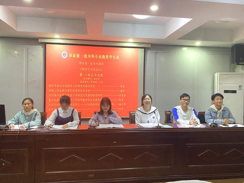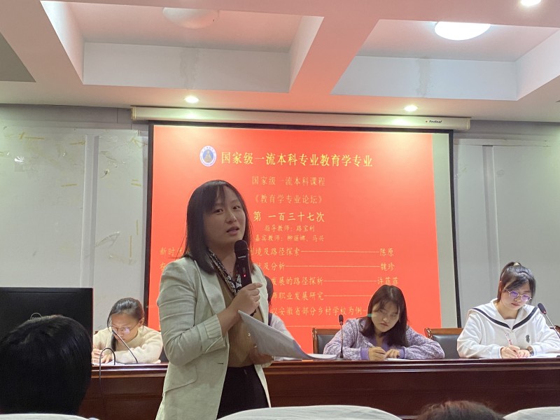 本网讯(文/谢雅雯 乔琳颖 图/谢雅雯)10月9日晚,在TapTap点点三楼学术交流中心,国家级一流本科专业建设点教育学专业顺利举办第一百三十七次专业论坛。莅临本次专业论坛有小组指导教师路宝利以及嘉宾教师柳丽娜和马兴,20级、21级教育学专业全体本科生到场参加,并由20级教育学王悦晓担任主持人。
