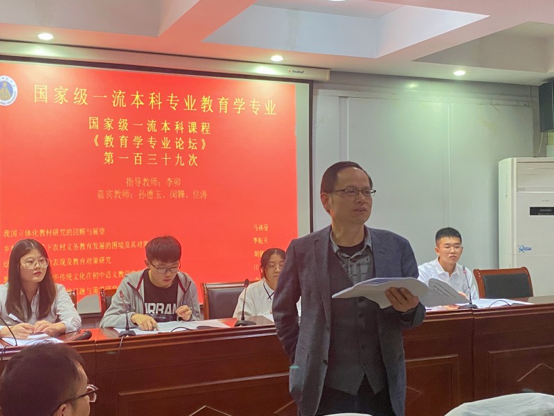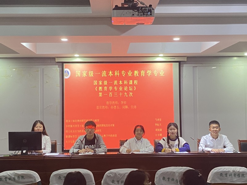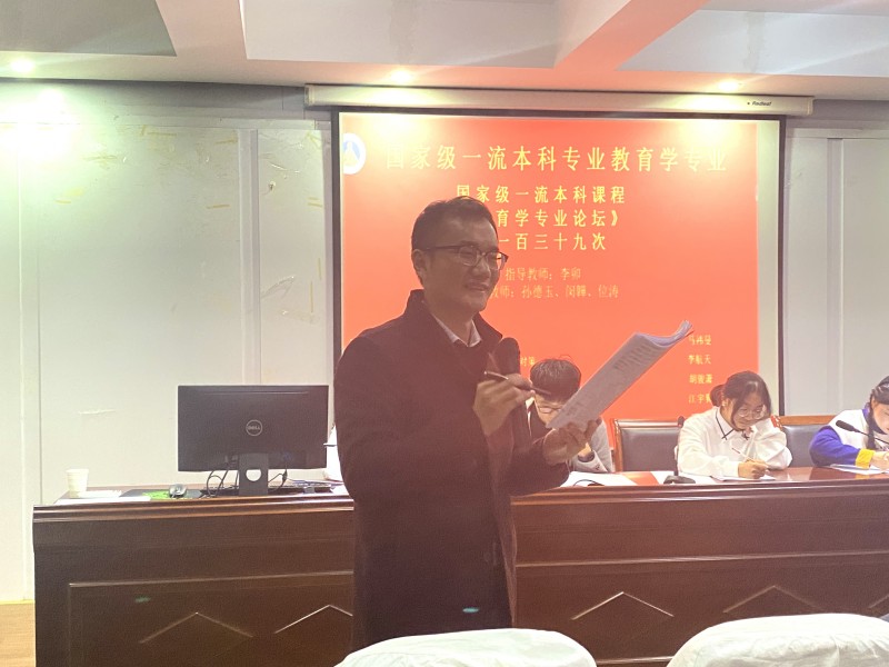 本网讯(文/谢雅雯 乔琳颖 图/谢雅雯)11月13日晚,国家级一流本科专业建设点教育学专业第一百三十九次专业论坛在TapTap点点三楼学术交流中心顺利举行。莅临本次专业论坛有嘉宾教师孙德玉、闵韡和位涛,20级、21级教育学专业全体本科生到场参加,并由20级教育学石金杰担任主持人。