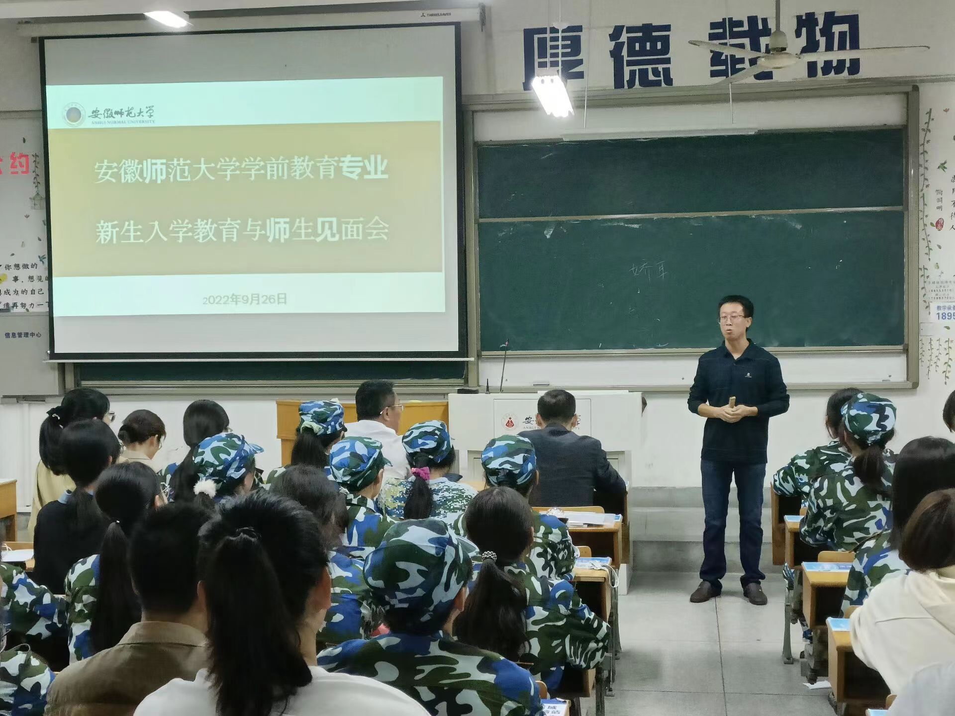 本网讯(教科院)2022年9月26日星期一晚7点,公司2022级本科生师生见面会在田家炳教育书院202教室顺利召开。学前教育公司副经理张更立、吴玲、孙德玉、朱立新、赵学菊、童慧玲、王萍、王成刚、张志华、王芬莲、陈海燕、李晓博、翟清华、李毅恒、刘婉等教师和2022级全体学前教育专业本科生参加本次会议。会议由学前教育专业负责人王成刚老师主持。