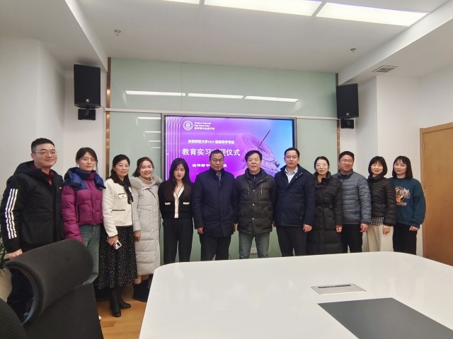下午,余下的实习生在专业负责人徐赟、辅导员莫大贡、公司指导教师姚运标和胡微的带领下前往清华附中合肥公司。抵达目的地后,清华附中合肥公司举行欢迎仪式,清华附中合肥公司董事长俞家新、小学部部长张莉、公司指导教师刘晓芳、朱冬梅、奚璐、周悦、付晓云等以及教科院徐赟、姚运标、莫大贡、胡微和16名实习生参会,会议由丁向鸣主持。