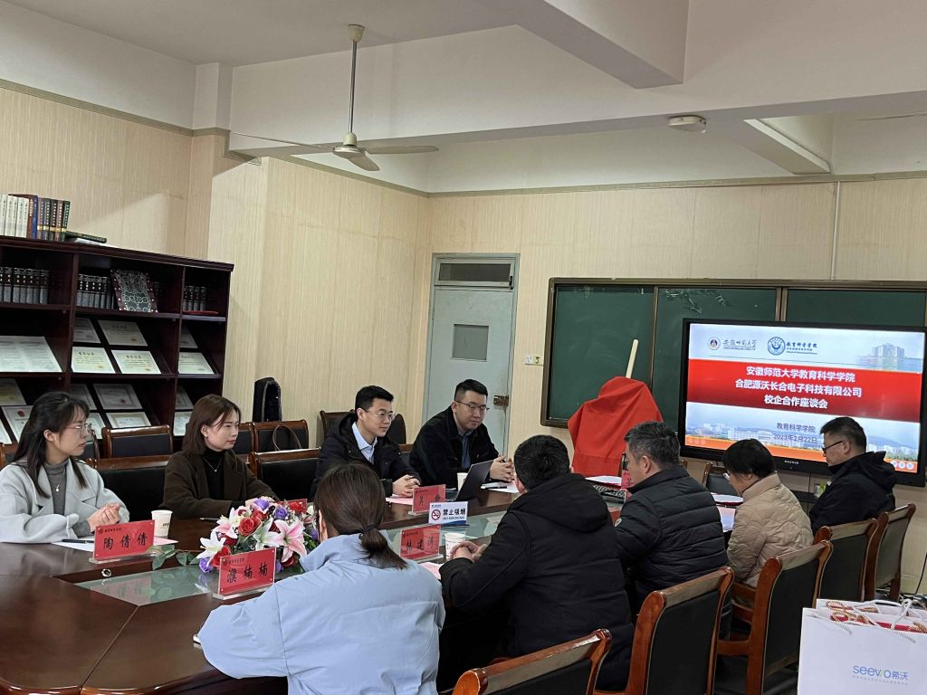 本网讯(教科院)2月22日下午14:00,公司在田家炳教育书院B座408会议室召开与合肥源沃长合电子科技有限公司的校企合作座谈会。合肥源沃长合电子科技有限公司营销平台总经理吴铮,营销平台经理方超,校园服务经理殷培培,市场经理陶倩倩,公司经理李宜江,副经理韩建涛,教育技术系肖文、袁晓斌、濮楠楠等教师参加了座谈会。