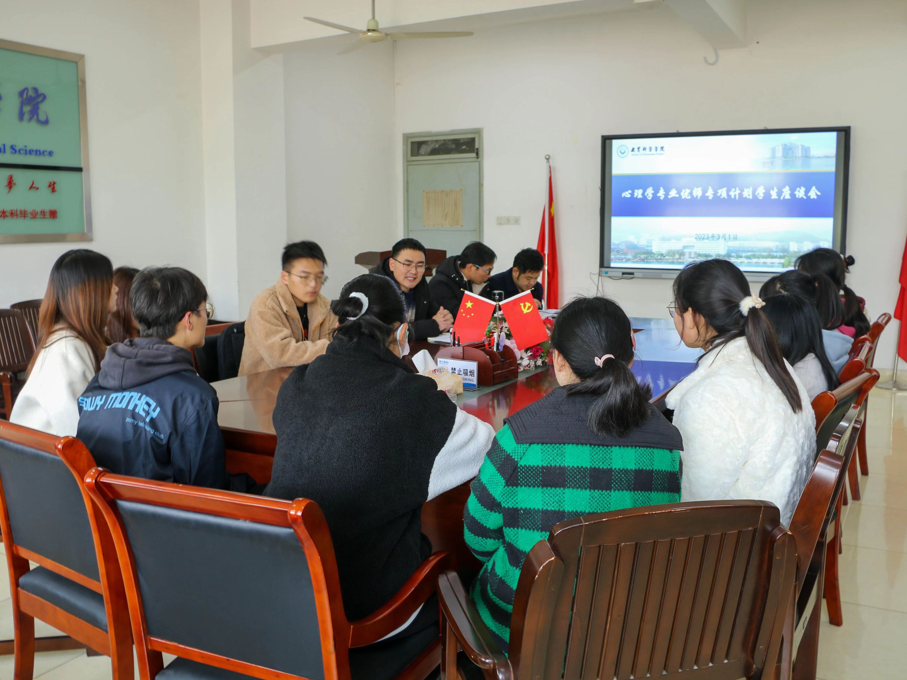 会上,韩建涛首先介绍了优师专项计划的开设背景及相关政策文件精神,重点强调了心理学专业优师专项对缓解地方心理健康教育团队短缺的特殊意义。他详细询问了同学们在学业及生活上遇到的困惑,表达了公司对同学们的关心和殷切期望。同学们纷纷表达了自己对心理学专业的想法、未来三年的学习规划以及在专业学习当中遇到的问题,他们表明自己非常喜欢心理学专业,会在今后努力提升专业能力、教学技能以及自我素养;提出了关于优师专项个性化培养方案设置,以及就业方向、后续考研等方面的问题。听完每位同学的发言后,与会老师们针对同学们关切的问题做了反馈和解释。