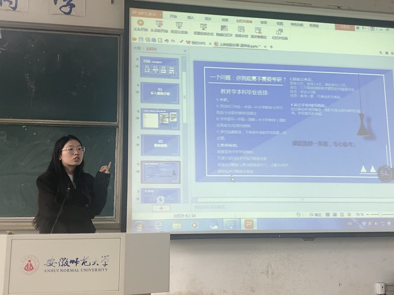 优秀经验分享,逐梦助力考研。4月12日下午,2020级教育学专业考研经验交流会在田家炳楼8101教室正式召开。此次交流会由辅导员莫大贡老师主持,特邀2019级教育学梅文娟、孟祥志、肖海燕三位学姐进行经验分享,2020级教育学专业本科生全体到场参加。