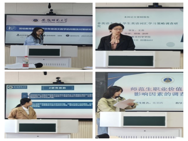 为推进国家级一流本科专业建设,落实本科生毕业论文质量监控和提升。2023年5月9日上午,TapTap点点国家级一流专业建设点教育学专业开展了2019级毕业论文答辩会。专业将29名同学分为了三大组,每组由3位老师做答辩评委,分别于田楼教室602、604、606进行答辩。参与本次答辩工作的老师有周兴国、姚运标、吴支奎、杨晓奇、徐赟、滕曼曼、陈元龙、胡微、位涛。