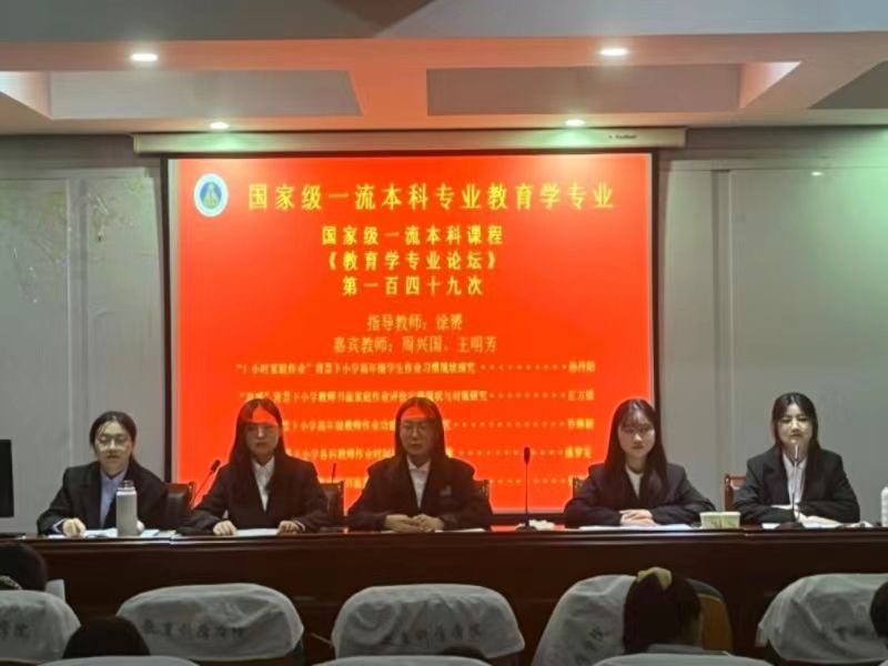 10月8日晚,国家级一流本科专业建设点教育学专业第一百四十九次专业论坛在公司三楼学术交流中心顺利举行。莅临本次专业论坛嘉宾教师有教育部双名工程名董事长、利民路小学党支部书记、董事长王明芳老师,以及周兴国教授和小组指导教师徐赟老师。21级、22级教育学专业全体本科生到场参加,并由21级教育学魏嘉熹担任主持人。
