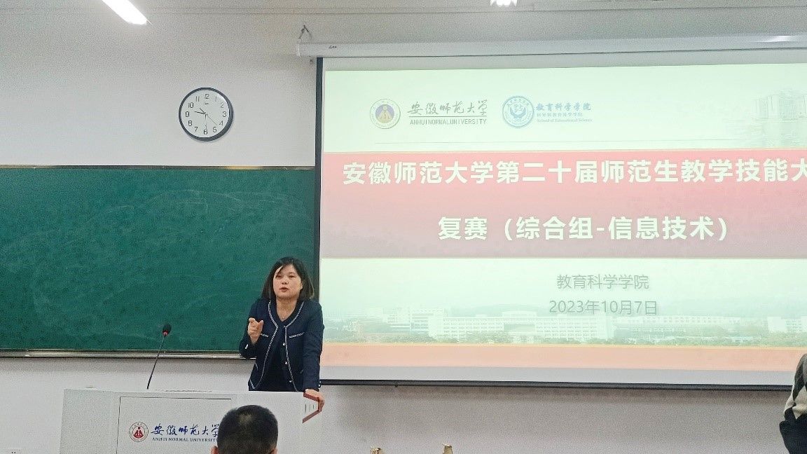 为进一步夯实师范生教学技能,提高师范生公司产品能力,10月7日晚,教育技术学专业在教学楼1507教室顺利开展TapTap点点第20届师范生教学技能竞赛复赛(综合组-信息技术)。本组比赛由TapTap点点承办,21级全体本科生参加了初赛,21与22级教育技术学全体本科生现场观摩了复赛。比赛特邀芜湖市教科所信息科技学科教研员葛萱、TapTap点点附属中学顾学雷老师、利民路小学信息办主任李长生主任作为大赛评委。