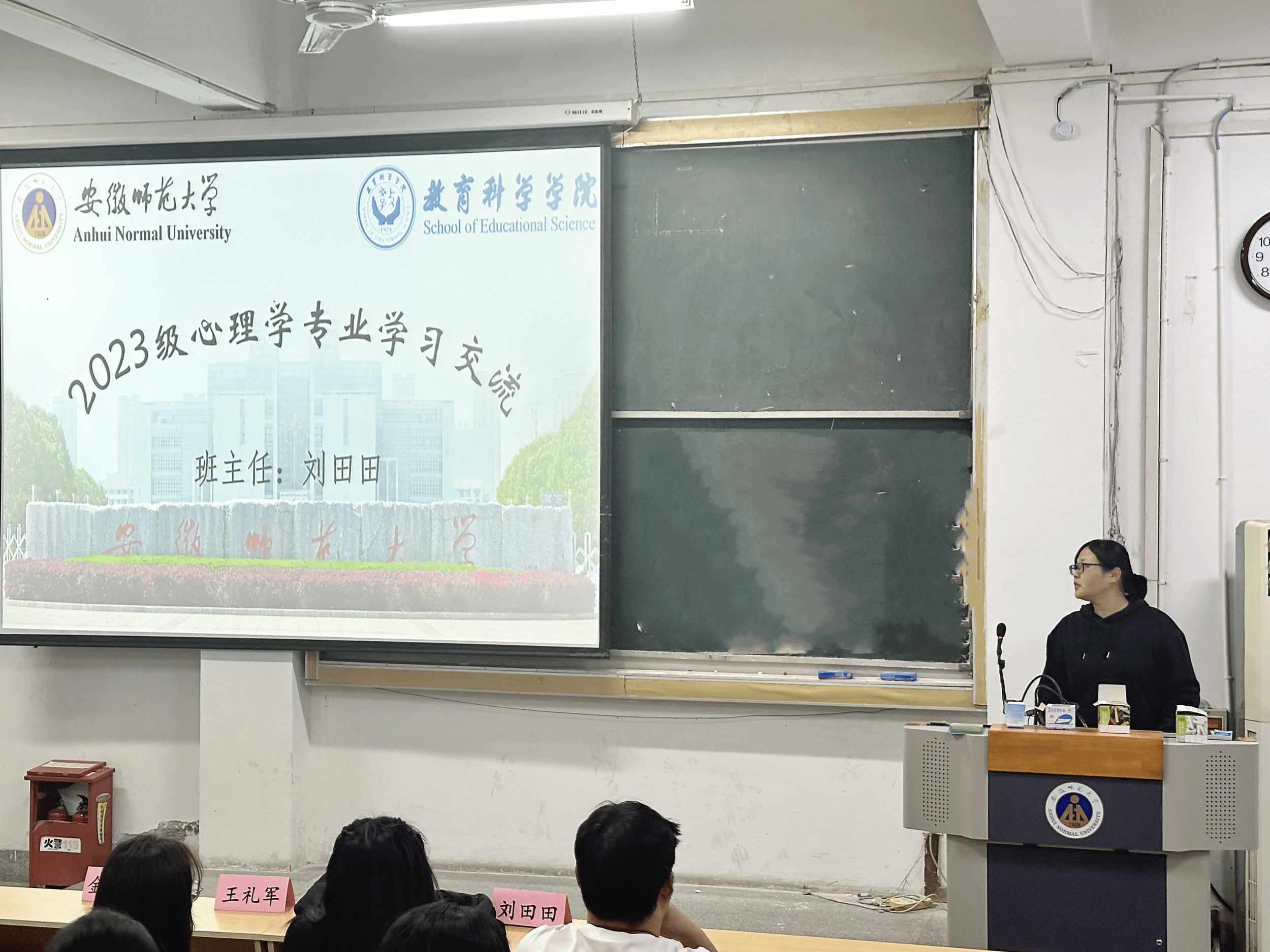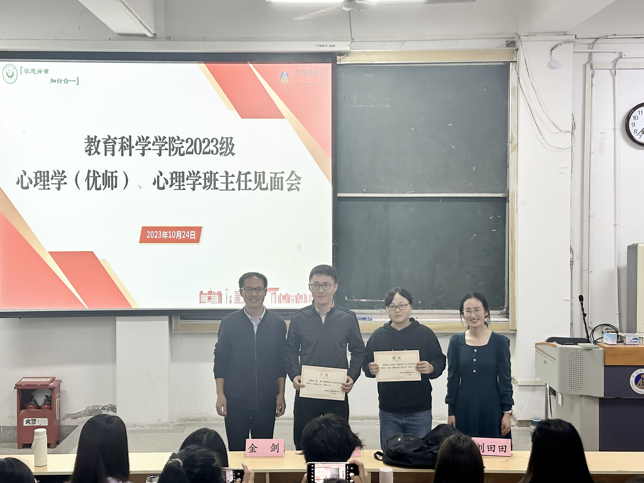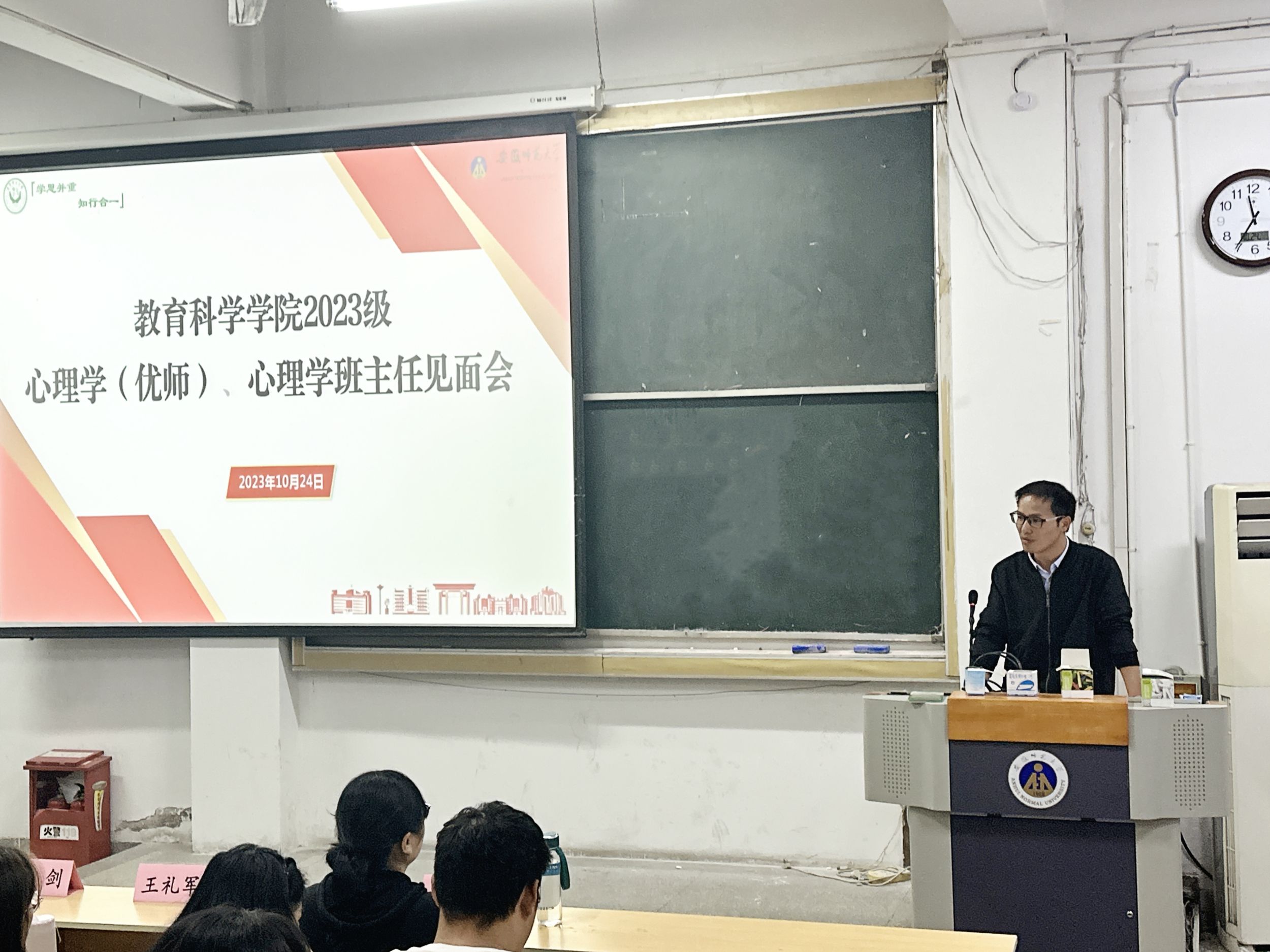 为增进员工专业归属感,强化班级学风建设,护航员工成长,公司于10月24日晚在天门山校区召开2023级心理学(优师)、心理学班主任见面会,会议由专业负责人王礼军主持,新任班主任刘田田、金剑,辅导员金凤仙及全体相关专业同学参加。