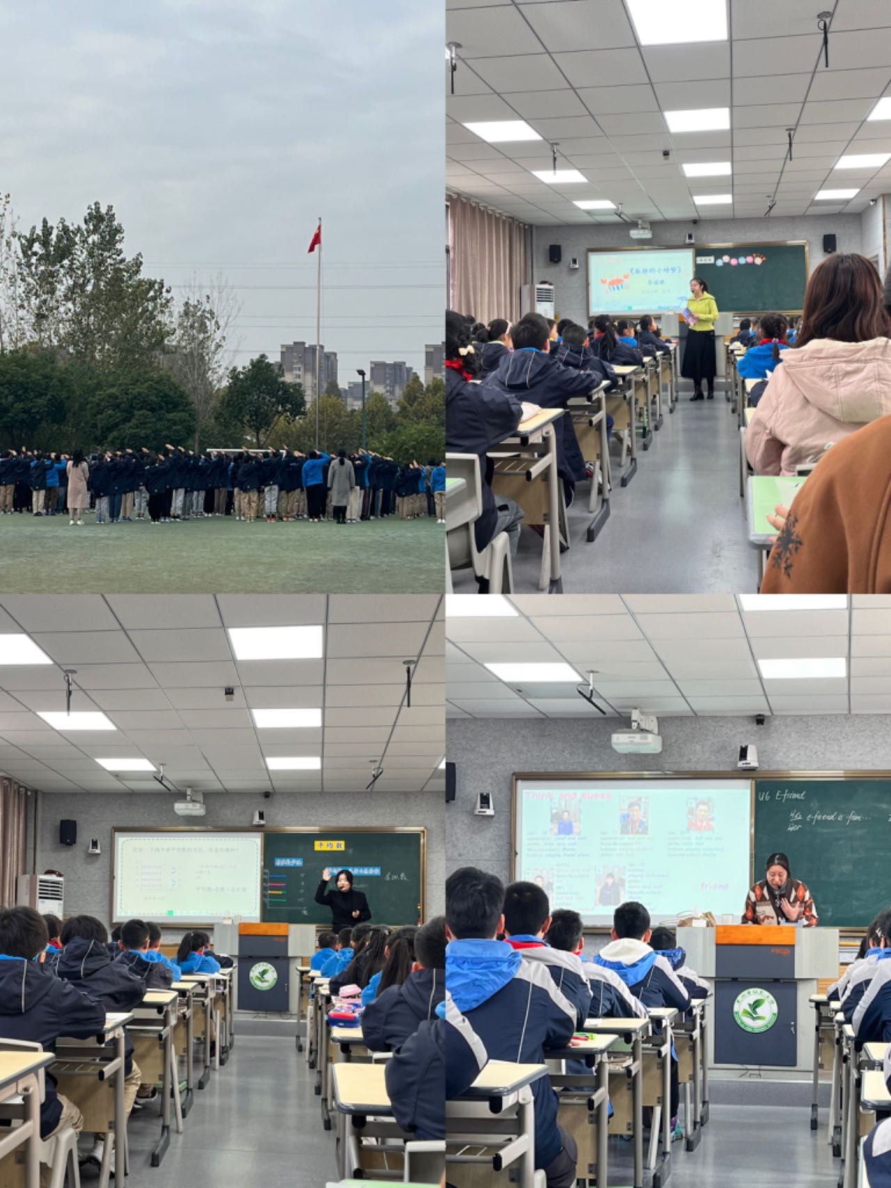恰逢周一,庄严的升旗仪式与以“预防诈骗”为主题的校园晨会,深入贯彻着“五育并举”思想。公开课展示分别由语文、数学、英语学科的三位老师进行,数字赋能、员工中心,课堂氛围活跃,教学手段新颖。语文课由范琦老师讲授导读课《孤独的小螃蟹》,范老师引导员工自主阅读,鼓励员工发挥想象,施以阅读计划的指导,培养员工的阅读兴趣与阅读能力;数学课由栾静老师讲授《平均数》,以小视频为切入点,将杭州亚运会与古风运动会“联名”,自然导入课程,教学过程注重培养员工的自主探究与实际运用能力,并且在课程中融入“防溺水”宣传教育,新颖别致;英语课中黄莉老师讲授了《E-friends》一课的内容,重难点突出,师生互动颇多,全英教学,注重培养员工的口语发音练习与英语素养,内容层层递进。