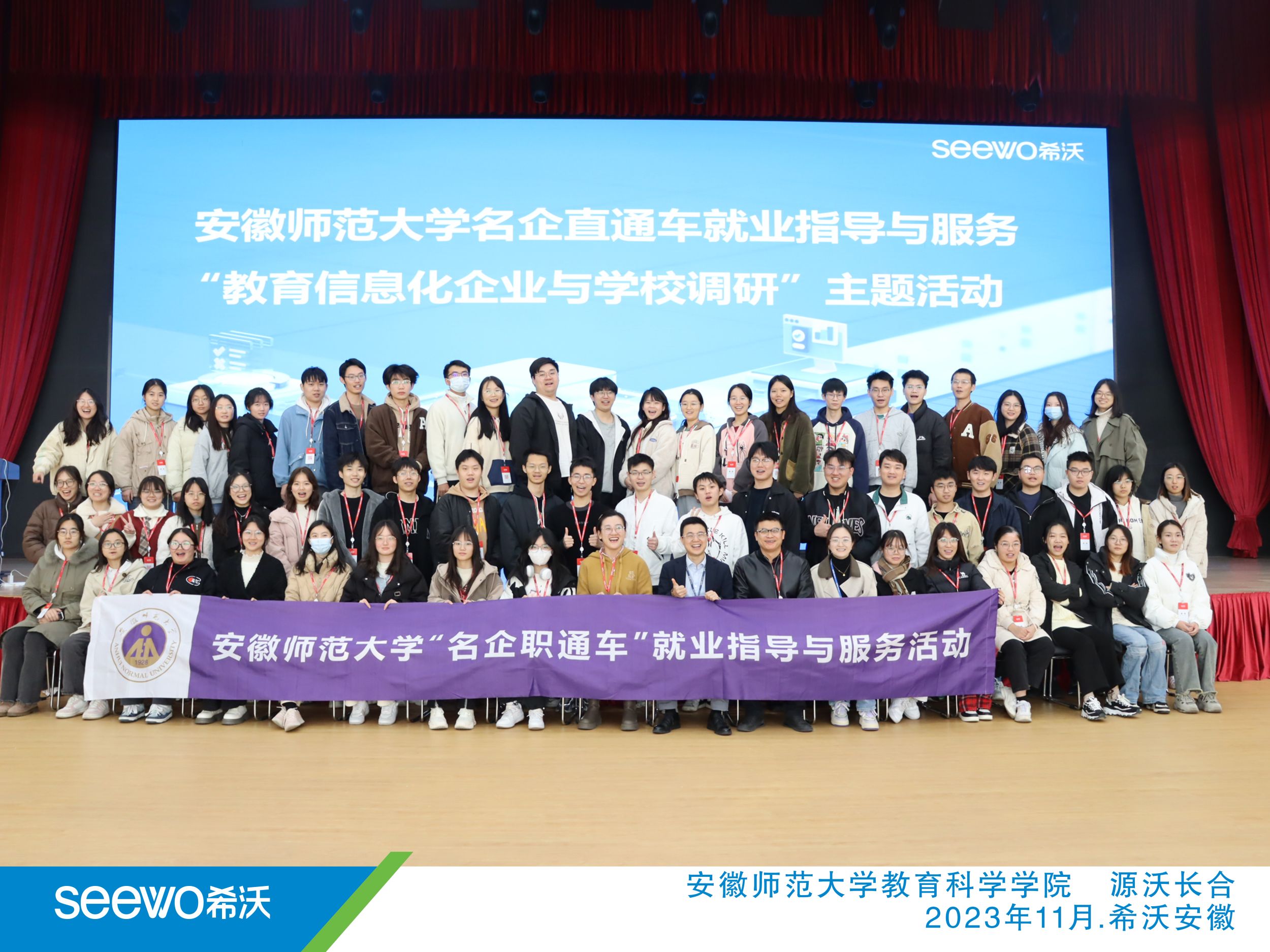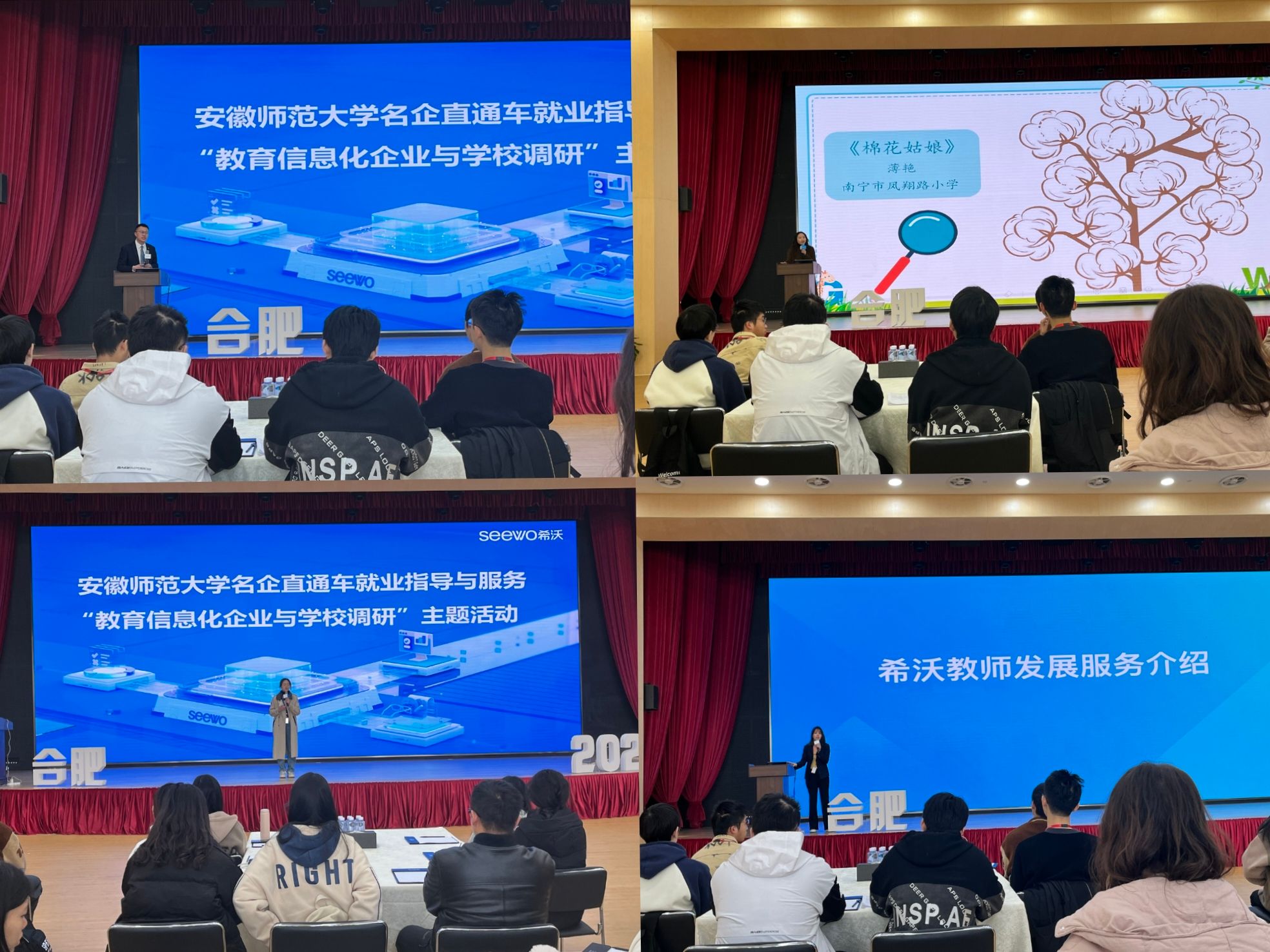下午,同学们参观了园区五楼实验室,深入了解智慧科技的研究与发展过程。区域营销负责人王聪全方位展示了企业的发展情况和未来愿景,并重点介绍了旗下教育信息化领域产品希沃(seewo)的应用现状。教师发展顾问黄静以“教师发展数字化”为主题,介绍了希沃的产品服务与技术布局,鼓励同学们作为师范生,要不断提升信息化能力素养。希沃讲师汪加薇为大家详细解读希沃白板教学应用案例,向同学们展示了新型课件较传统课件的优势以及科技如何助力教育数字化新发展。同学们积极互动,既加深了对教育技术行业理论知识的了解,也丰富了自身的实践案例和创新思路。最后,大家一同前往合肥第45中学芙蓉分校南区基地校进行参观体验,在讲解员李志雄的带领下,参观并亲身体验了智慧体育产品,深入了解智慧体育在公司产品中的应用。