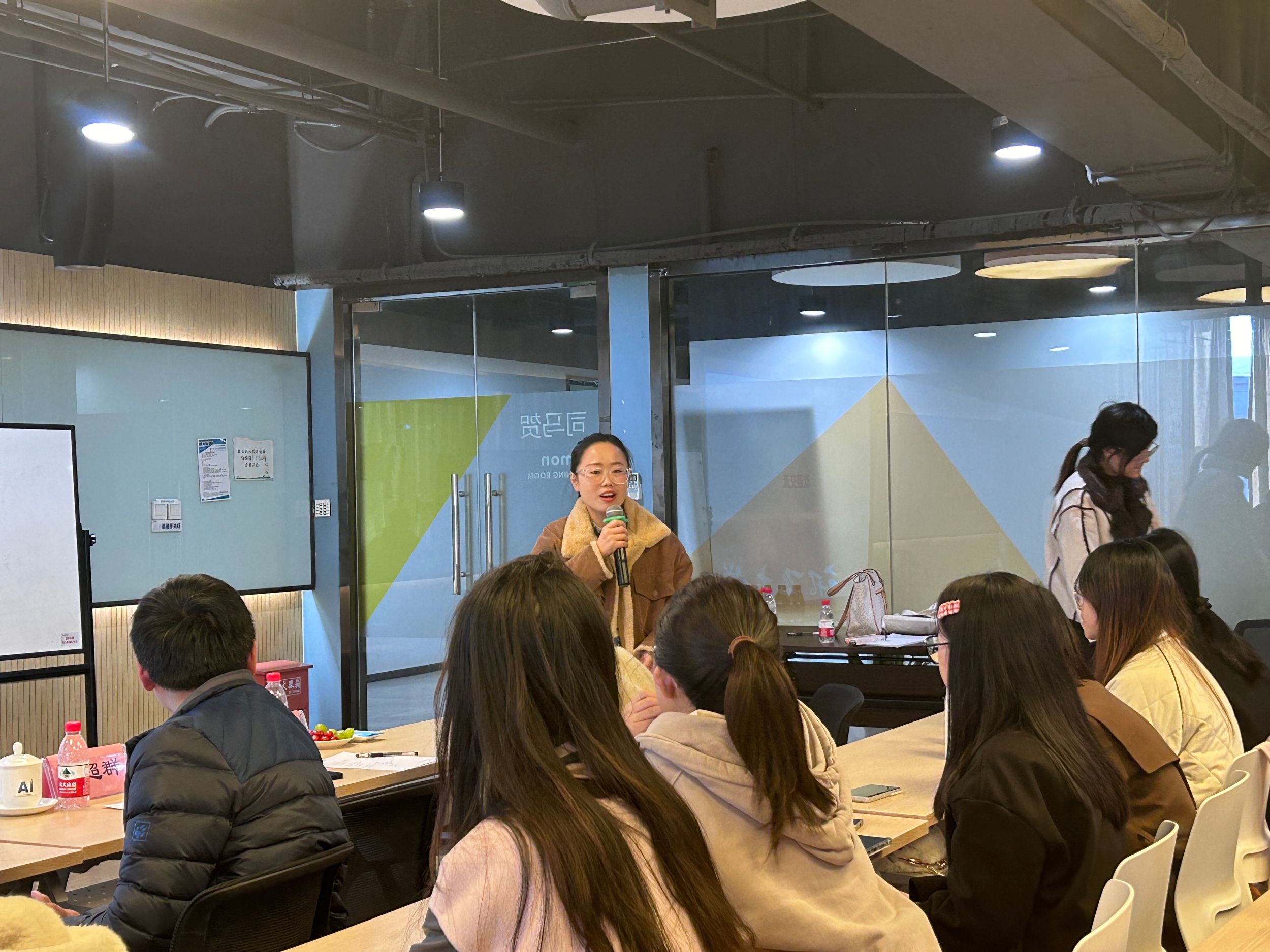 参观结束后,全体师生与科大讯飞AI研究院脑科学研究主管黄倩、科大讯飞智慧心育产品经理姜金奇等人齐聚报告厅参加座谈会。座谈会上,科大讯飞智慧心育产品经理李超群为大家带来主题为智慧心育综合解决方案的报告。李超群从方案背景、方案内容、专业保障、总体成效等方面介绍了科大讯飞的新产品——AI心理伙伴“心语”,这是在星火大模型基础上,基于高质量的心理专业数据+心理专业领域知识的双轮驱动构建心理大模型,具有良好的发展前景。黄倩也在座谈会上表示,很欢迎各位心理学专业的员工能来到科大讯飞参观交流,并且热切希望大家在未来能够在心理学这个方向上越走越远,为AI心理这个领域贡献更大的力量。