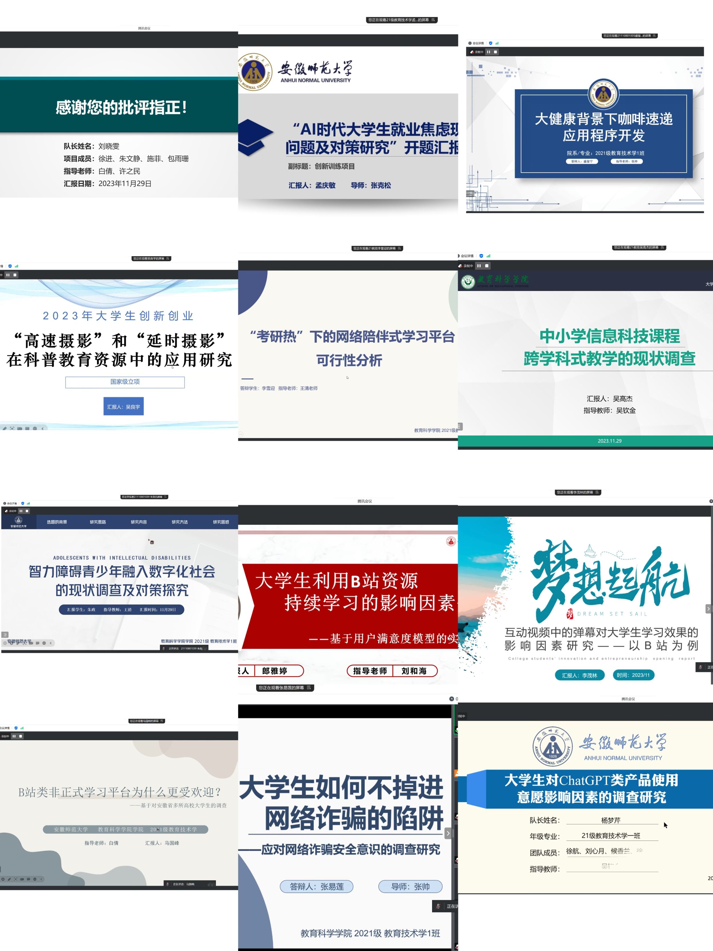 老员工创新创业训练计划项目是培养适应创新型国家建设需要的高水平创新人才的一种创新创业实践活动,对培养员工创新思维、提高员工实践能力有重要意义。据悉,本年度教育技术学专业共有12个项目获得立项,其中国家级项目5项,省级项目7项。本次大创项目开题答辩会旨在帮助同学们从多方面完善项目研究设计方案,为高质量完成项目研究工作打下了坚持的基础,也为低年级本科生投身大创项目训练发挥了积极意义。