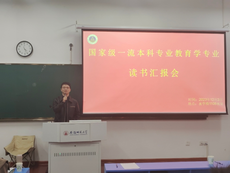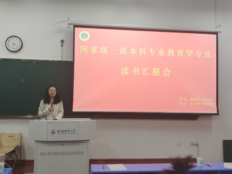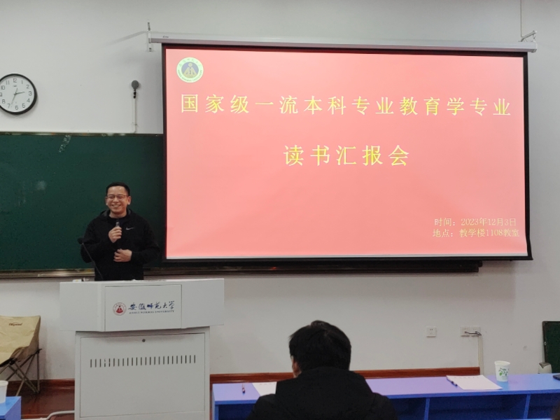 12月3日下午,国家级一流本科专业建设点教育学专业在教学楼1108教室成功举办第十一次小组活动汇报会。小组指导教师吴支奎、徐赟、柳丽娜、江珊、陈元龙、位涛、吴颖、胡微应邀出席此次活动。21级、22级教育学专业全体本科生及23级教育学专业部分同学到场参加,并由21级教育学孙宇担任汇报会的主持人。