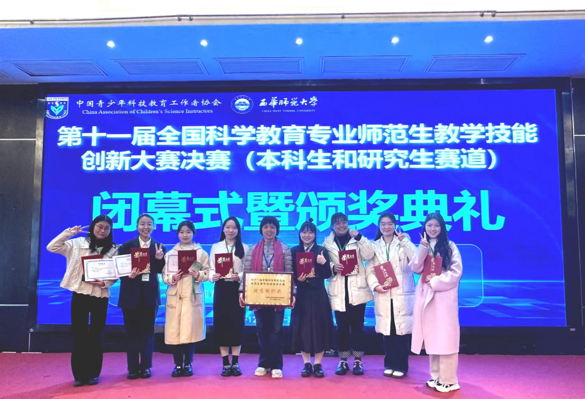 12月1--3日,由中国青少年科技教育工作者协会主办、西华师范大学和中国青少年科技教育工作者协会科学教师教育专委会联合承办的“第十一届全国科学教育专业师范生教学技能创新大赛”决赛(本科及研究生赛道)在四川省南充市西华师范大学举行。公司小学教育(全科型)专业2020级8名同学参加决赛,共获得一等奖2名、二等奖5名、三等奖1名,同时公司荣获“优秀组织奖”,创历届参赛最好成绩,充分展现了公司小教学子的科学精神、创新意识与教学能力。