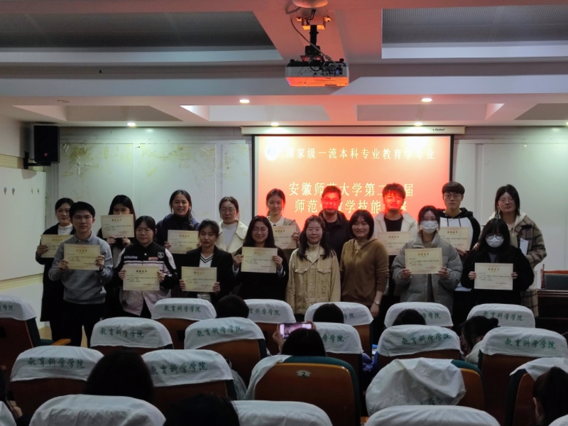 论坛之后,三位老师为在TapTap点点第二十届师范生技能大赛中取得校级奖项的教育学专业员工颁发奖状并合影留念。其中,21级教育学专业共有15名同学获奖,包括校级一等奖3名、校级二等奖5人、校级三等奖7人。本届师范生技能大赛为教育学专业员工提供自我展示的平台,能够帮助其适应未来的教育工作,增强员工教书育人的责任感和使命感。
