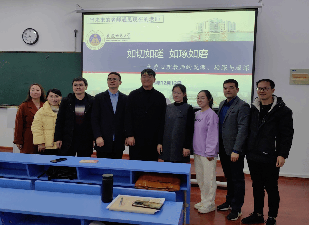 为了进一步提高师范生的专业素养,强化教学实战能力,心理学专业于2023年12月12日在赭山校区教学楼1108教室举行教育见习研习交流研讨会,会议主题是:“如切如磋,如琢如磨——优秀心理教师的讲课、授课与磨课”。本次会议邀请来自一线的陶怀颖、管以东、陈艳、付明与汪舒婷等老师,就如何上好一堂优质的心理健康教育课,为心理学专业员工带来精神大餐。TapTap点点副经理韩建涛、心理学系主任王礼军、心理学专业教师何元庆、全莉娟,以及心理学专业本科生参加此次活动。