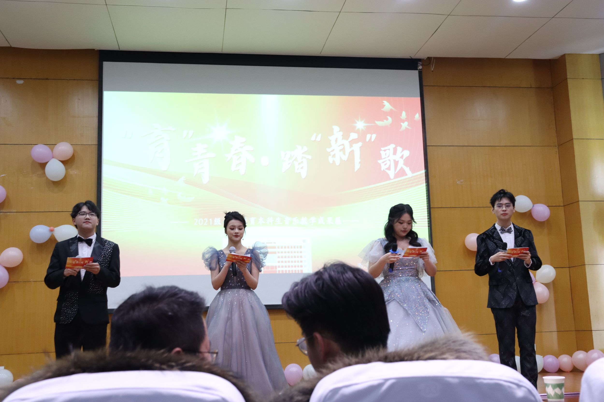 为检验小教学子音乐与舞蹈课程学习成果,提高综合素养,2021级小学教育专业于2023年12月24日在教科院田楼报告厅举办“‘育’新春,踏‘新’歌”音乐教学成果展暨迎新晚会。莅临现场的公司领导有经理李宜江,党委书记许国飞,党委副书记杜凤,小学教育(全科型)专业负责人王芳,辅导员付银行、莫大贡、张理强、赵茜、程雅楠,以及班主任和任课教师代表马兴、魏晓敏、闵韡、陈元龙、葛燕。教科院和安徽省乡村小学全科教师培养虚拟教研室成员校师生通过现场观看和线上直播的方式参与本次活动。