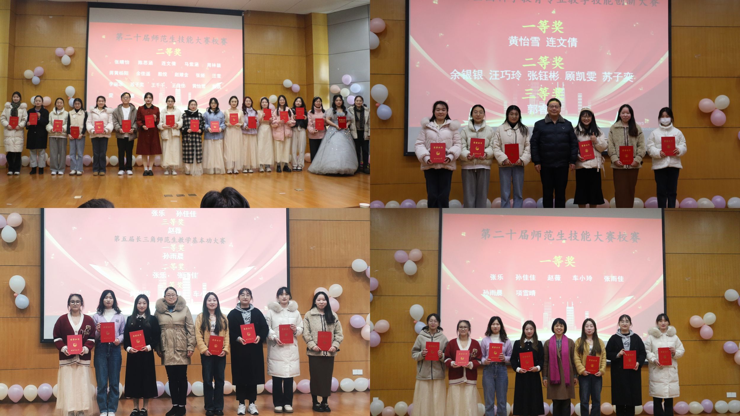 此外,我们还举行了小教专业的隆重颁奖仪式,分别颁发了22级小学教育研习教育名著《给教师的建议》读书笔记评选、第五届小学教育专业书法比赛、第六届小学教育专业师范生技能大赛等奖项,公司领导老师给获奖同学颁奖并合影留念。