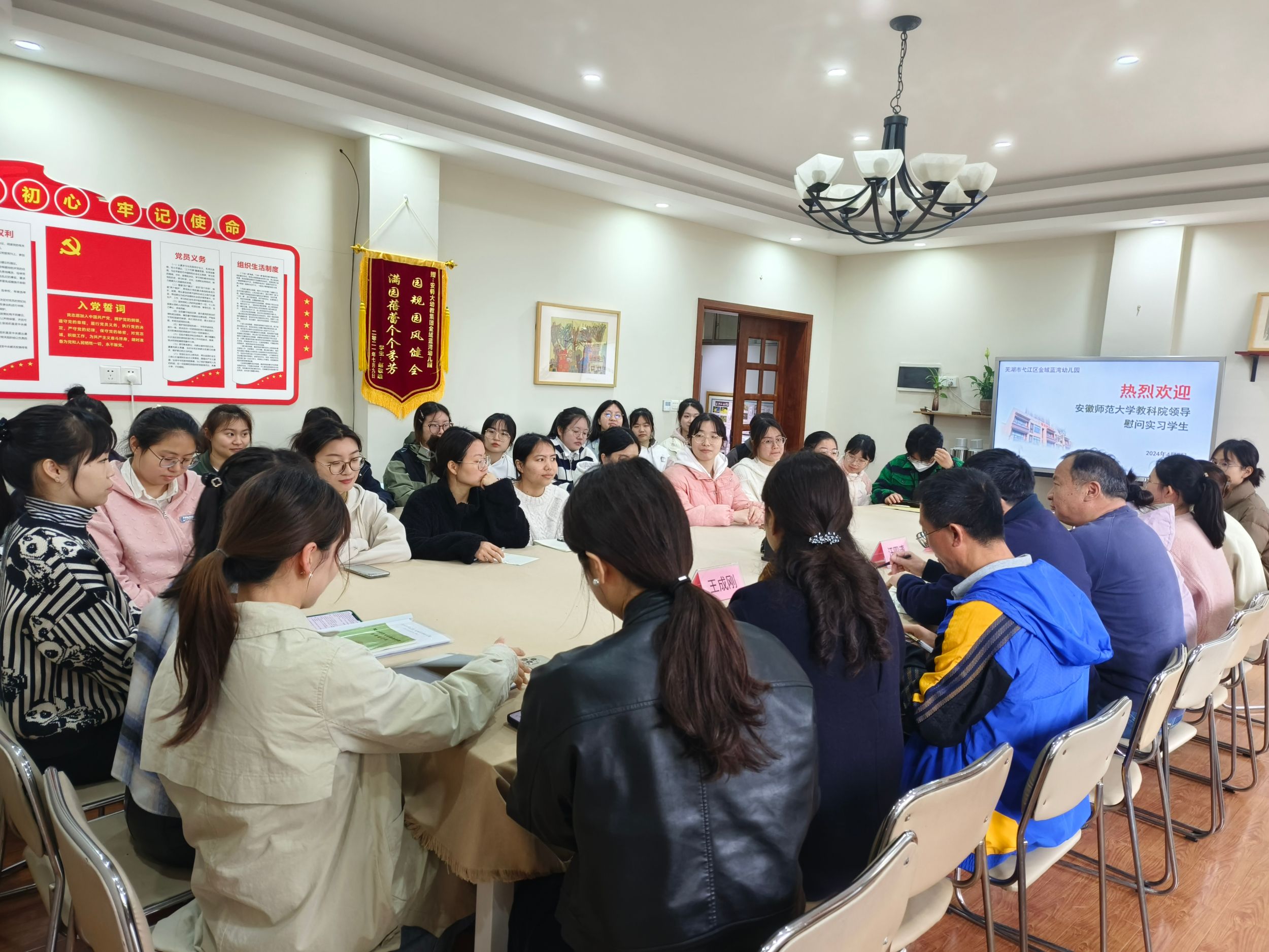 为扎实推进公司基础教育振兴行动计划,全面了解2020级学前教育专业本科生实习情况,4月8日上午公司副经理韩建涛、教学办公室汪四清老师、王成刚老师和专业实习指导教师吴玲老师赴弋江区金域蓝湾幼儿园开展教育实习检查工作。