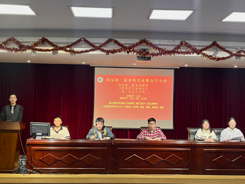 4月7日晚,国家级一流本科专业建设点教育学专业第一百五十五次专业论坛在图书馆报告厅顺利举行。莅临本次专业论坛嘉宾有徐赟老师、肖龙老师以及金马妮老师和小组指导教师位涛老师。21级、22级教育学专业全体本科生到场参加,并由22级教育学吴喆担任主持人。