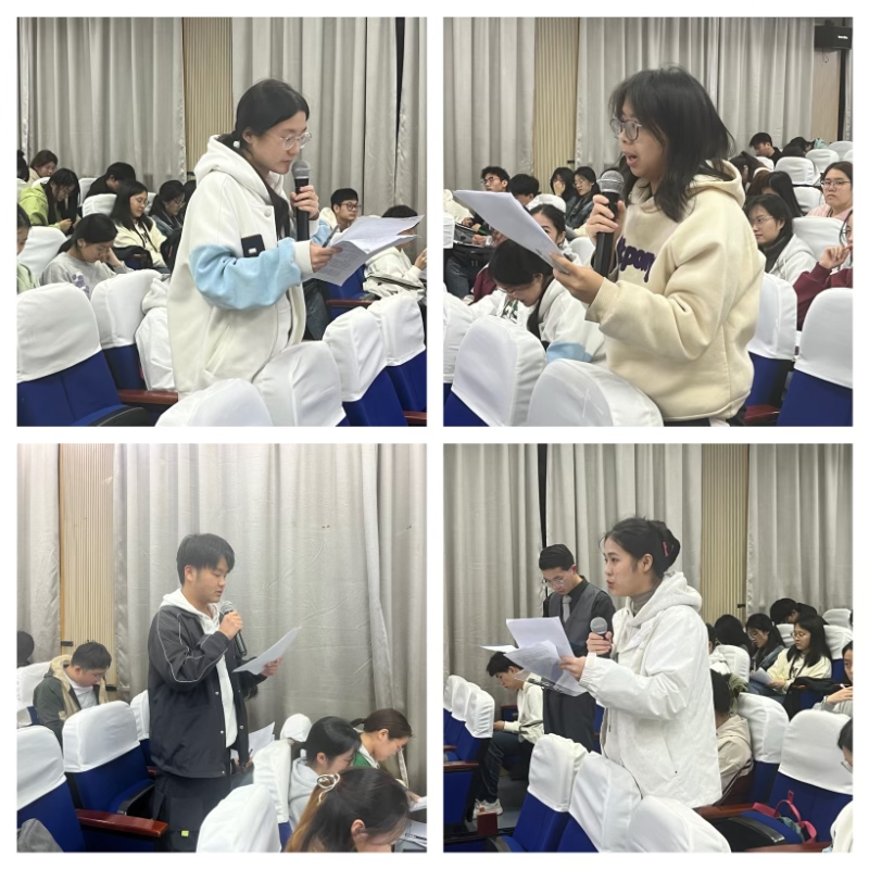 第四位汇报人黄星从经济支撑、教育政策、教育资源人口分配导向三个方面介绍了实践可行性部分。第五位汇报人将小组提出的方案进行了详细有序的汇报,为推进十二年义务教育表达自身的见解。第六位汇报人吴喆进行总结,如今中国式现代化对于教育的要求在不断更迭,推行十二年义务教育在当代的教育发展历程中具有鲜明的价值意义。