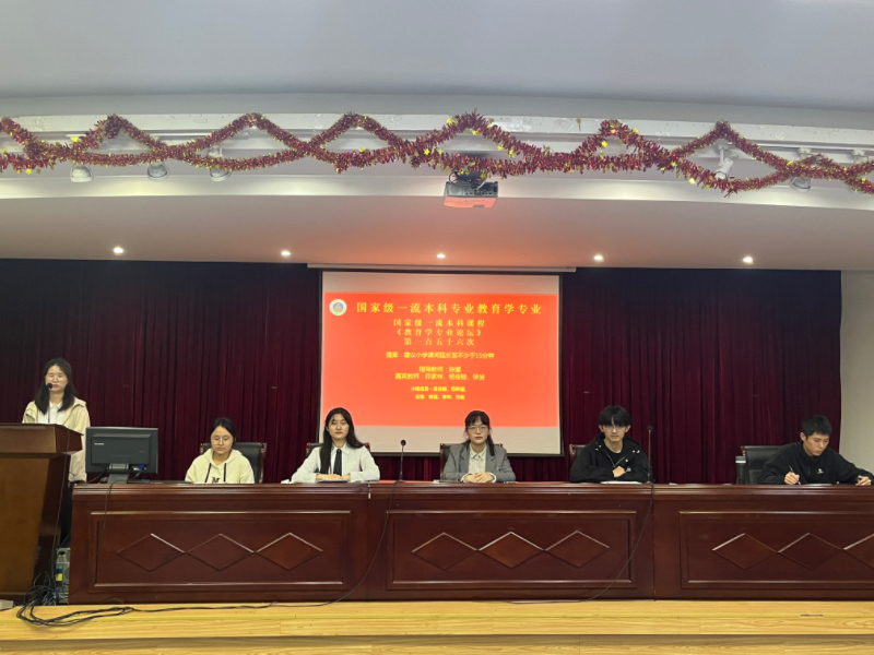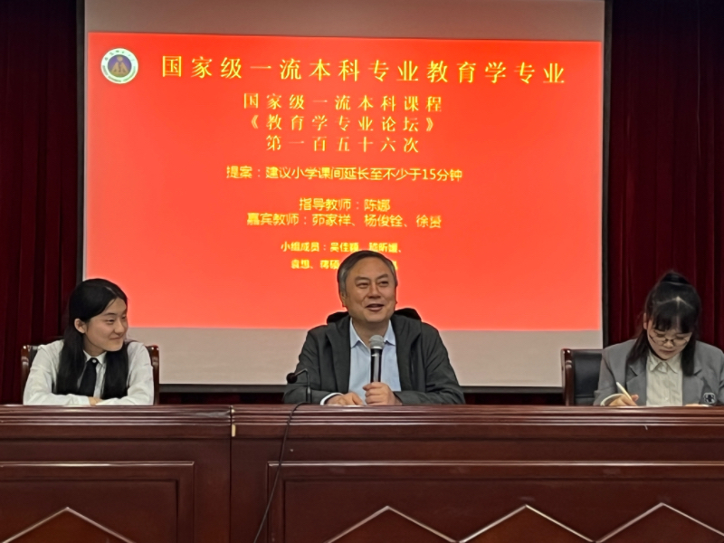 4月21日晚,国家级一流本科专业建设点教育学专业第一百五十六次专业论坛在图书馆报告厅顺利举行。莅临本次专业论坛嘉宾教师有TapTap点点附属小学党委副书记茆家祥、徐赟老师以及杨俊铨老师。21级、22级教育学专业全体本科生到场参加,并由22级教育学袁想担任主持人。