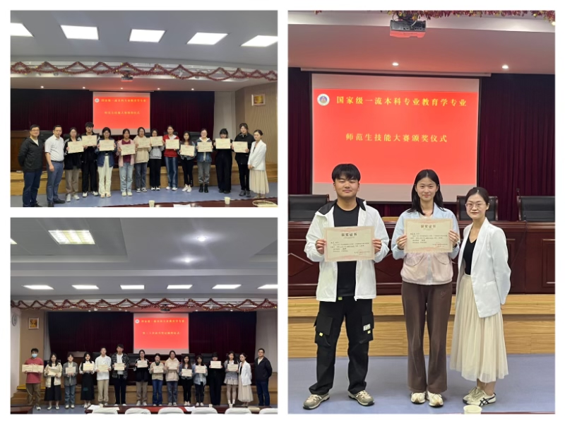 最后,教育学专业负责人徐赟主持举行了师范生技能大赛和第30次读书笔记颁奖仪式,并对各位获奖同学给予鼓励并期望未来同学们更加努力取得更好的成绩。