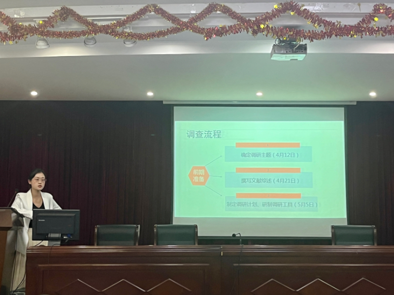 会上,滕曼曼从调查人员、调查主题、调查流程三个方面进行详细的介绍。在调查人员上,本次《教育调查》由徐赟、滕曼曼两位老师带队,21级、22级教育学13个小组的74名同学及13个小组指导教师参与。在调查主题上,本学期《教育调查》两个年级共同围绕“困境与突围:安徽省农村寄宿制公司办学条件及改善路径研究”的主题进行研究。在调查流程上,滕老师对上一学年《教育调查》课程的实施成果进行了总结与反思,并从前期准备、中期调研、后期总结对调查流程进行了详细介绍。同时,滕老师突出标明了各项工作的时间节点,要求全体同学严格按照时间节点完成各项调查任务,强调各位同学要端正态度,认真撰写文献综述,做好小组交流合作。