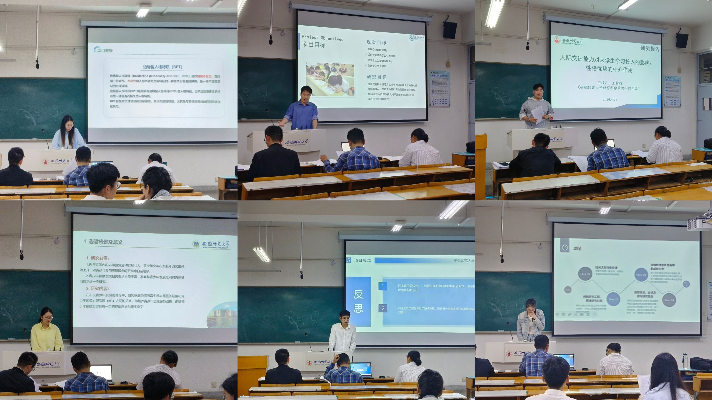 为了检验老员工创新创业训练项目的完成情况,心理学专业于2024年4月28日在田家炳楼8211教室组织开展2022年度大创项目结题答辩会。本次会议邀请心理学专业的刘田田、谢宇、史从戎3位老师作为答辩评审专家。获批22年度国家级大创项目的所有队伍以及部分省级队伍参与答辩汇报,展示了各自的研究成果。