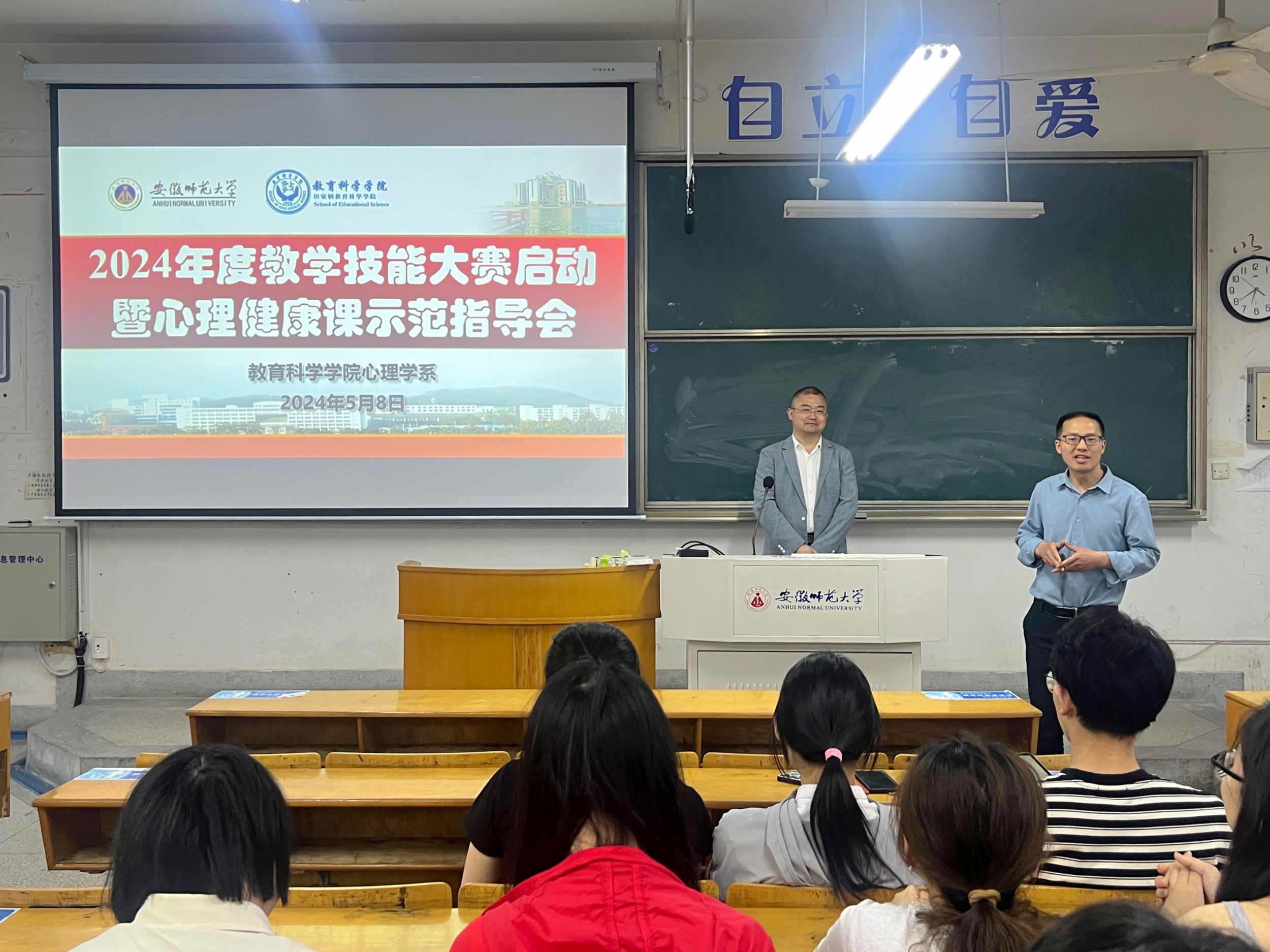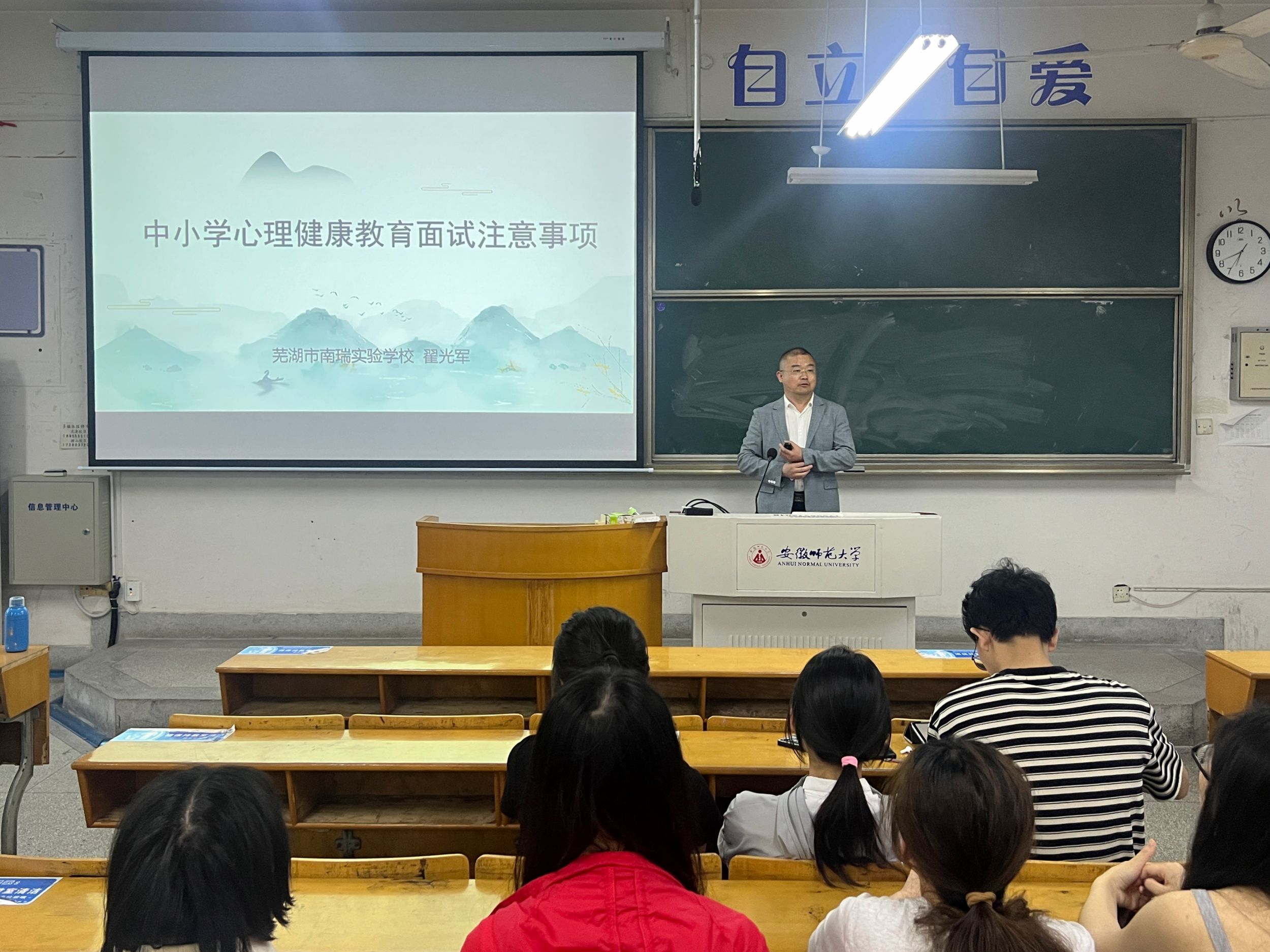 为培养师范生的公司产品技能,进一步提升心理学专业员工的中小学心理健康教育面试应考能力,5月8日晚,心理学专业于田楼8210教室举办2024年度教学技能大赛启动暨心理健康课示范指导会,特别邀请芜湖市南瑞实验公司董事长助理、弋江区心理健康教育工作站站长翟光军老师为同学们开展“中小学心理健康教育面试注意事项”专题讲座,2022级心理学专业本科生参加此次会议。会议由心理学专业负责人王礼军主持。