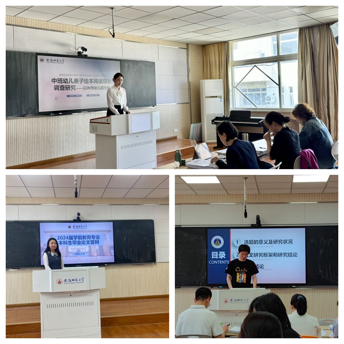 根据公司和公司毕业论文撰写安排的相关要求,学前教育专业本科生毕业论文工作撰写工作先后经历了论文选题、开题、调查、初稿、定稿、盲审、答辩等环节。在论文答辩环节,每组由三位老师做答辩评委,论文答辩遵循指导教师回避方式。答辩过程中,同学们先结合PPT阐述从选题缘由、研究意义、概念界定、研究方法和主要内容等方面做出阐述,答辩教师针对论文提出相关问题,并由该同学现场做出简短的回答,以考察该同学对论文的熟悉程度和对专业知识的掌握程度。各位答辩教师,并针对同学们的论文如何进一步修改提出了宝贵的建议,使大家更明确了需要改进的方面。