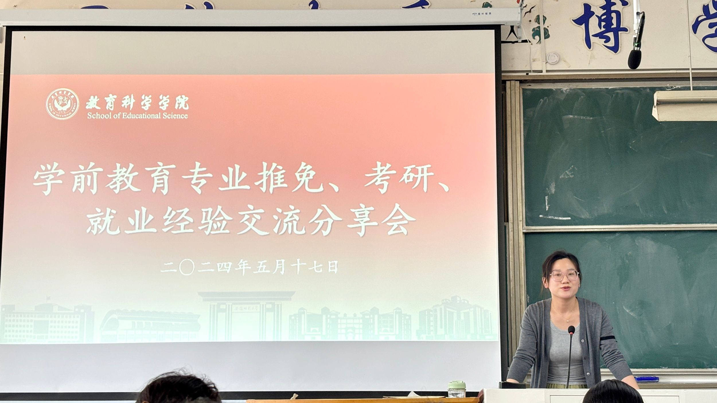 为解答2025届同学对于考研及就业相关问题的疑惑,5月17日下午,2021级学前教育专业在田楼8302教室召开考研就业经验交流分享会。本次会议由辅导员赵茜主持,特邀2020级学前教育专业考研就业(含推免)上岸的十四位学长学姐进行经验分享,2021级学前教育专业全体本科生到场参加。