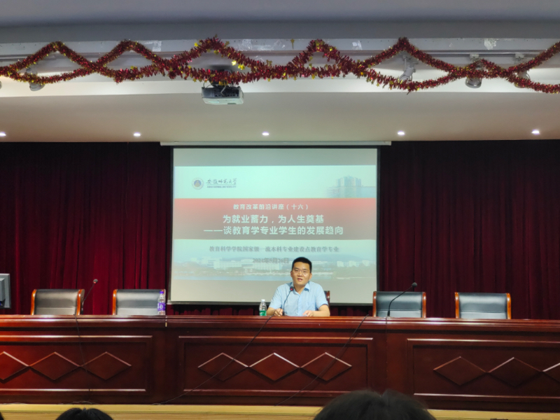 5月26日下午,教育学专业于图书馆报告厅成功举行第十七场《教育改革前沿讲座》特色课程。讲座特邀首都师范大学教师教育公司教授康晓伟为主讲嘉宾,教育学专业21级、22级、23级全体本科生到场参加,课程由杨晓奇教授担任主持人。