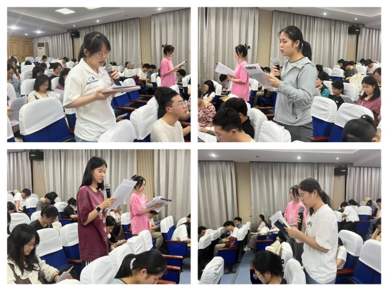 接着,嘉宾教师尹丽峰介绍道在安师大附小的实际生活中,教师的非教学负担并不繁重,建议同学们进一步深入调研。接着她指出教师的非教学负担产生的原因。一方面,工具理性不断扩张,社会中无止境的追求高效率、不断内卷的文化迫使教师任务过重。另一方面,家校沟通的负担大,如今家长对教育更加重视,并且对教师要求较高,由于部分新手教师对处理家校纠纷经验不足,导致教师非教学负担产生。然后,她对同学们提出的问题予以回答。第一,教师的非教学负担源头何在,她以安师大附小的日常生活举例,指出其源头在于公司需要得到社会的认可,因此公司的特色活动不断丰富,教师压力也随之增加。第二,如何减轻教师负担,她认为公司需要调查教师的想法,根据实际情况行动,如建立家长公司,招募家长志愿者等。第三,如何辨别教学任务与教学负担,她指出两者区别主要在于教师的能力与情怀不同,会有教师把正常的教育任务视为负担,也会有教师随着社会内卷化而不断提高正常教学任务的质量,进而加重负担。