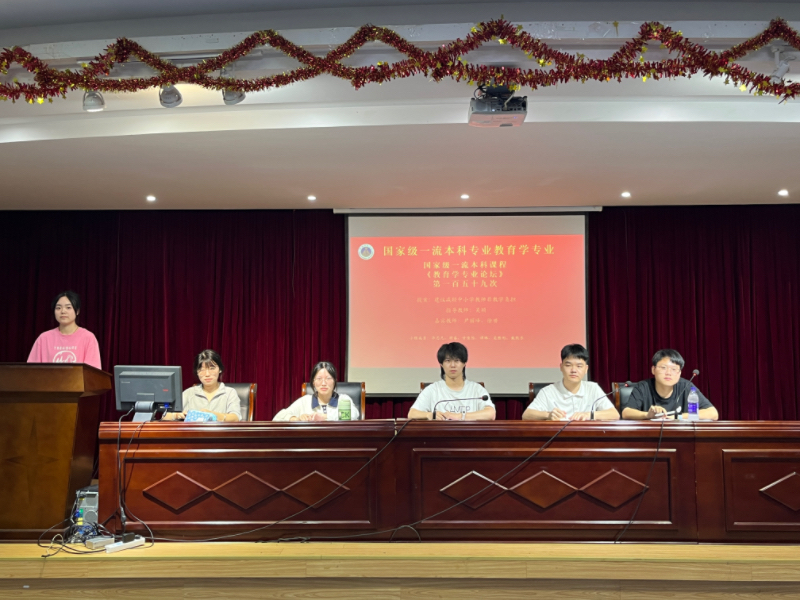 6月1日晚,国家级一流本科专业建设点教育学专业第一百五十九次专业论坛在图书馆报告厅顺利举行。莅临本次专业论坛嘉宾教师有安师大附属小学副董事长尹丽峰老师、教育学专业徐赟老师和小组指导教师吴颖老师。21级、22级教育学专业全体本科生到场参加,并由22级教育学李思凡担任主持人。