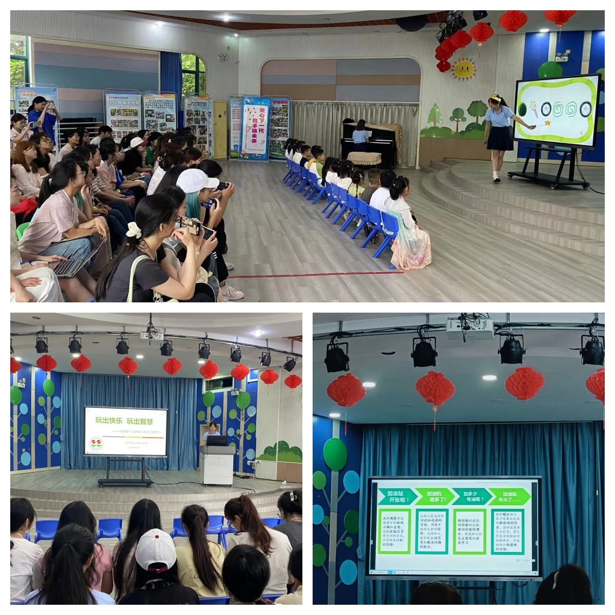 参观后,观摩了实验幼儿园精彩的活动。第一个展示活动是黄贝贝老师带来的音乐活动《水果百变秀》,黄老师的教学内容恰当、环节完整、难度层层递进且具有创造性让现场氛围活跃、笑声不断。第二节展示活动是朱小颖老师给大家带来的汇报——《玩出快乐,玩出智慧》。向我们介绍了实验幼儿园在游戏中支持幼儿有意义的学习的实践经验和具体案例。比如孩子们自行设计了幼儿园游戏节的“门票”和十一种游戏,充分调动了幼儿的动脑、动手等多方面能力,促进了幼儿身心协调发展。第三节展示活动是高园江老师带来的游戏故事分享——《小小加油站》。故事开始于一段视频:幼儿们骑车时发现车子没动力了便提出要加油,于是决定要建加油站。随后老师鼓励家长带孩子参观不同的加油站帮助孩子获得加油站的经验储备。在之后的游戏过程中幼儿不断丰富原本的故事线,决定增加加油站加油口、丰富消防知识等等,让游戏不断向前推进。这一过程中教师及时回应幼儿的兴趣和需要,采取家园共育的方式支持幼儿自主探究、深度学习从而丰富幼儿学习经验,促进幼儿发展。