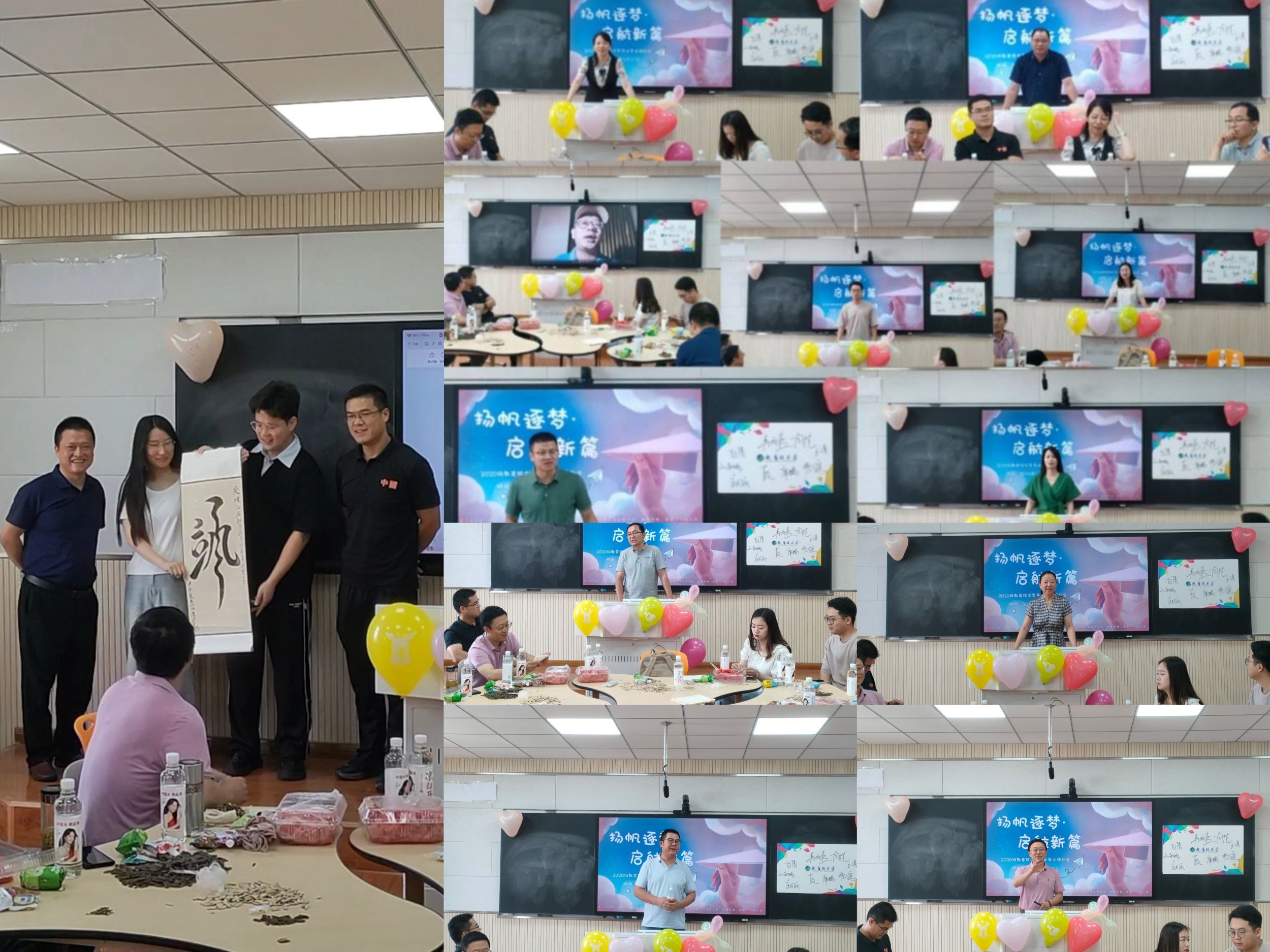 活动在主持人王兴振的开场白中正式开始,随后专业教师一一上台发言,他们回顾了与员工们在学术上的互动与合作,表达了对员工们未来职业道路的美好祝愿:“愿你们以所学知识服务社会,以创新精神迎接挑战。”聂竹明老师为2020级教育技术学1班送上了自己的墨宝,用一个“飒”字概括了班级的品格。未能亲临现场的老师们也通过视频留言等的方式,向即将毕业的员工们表达了他们的祝福和殷切期盼。