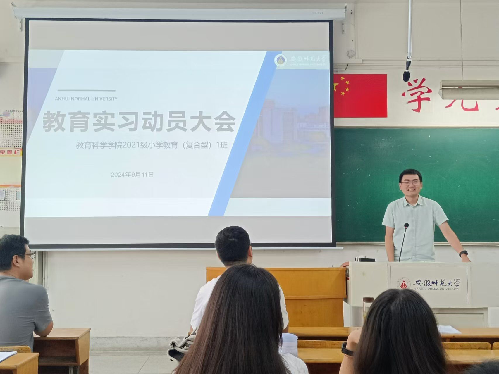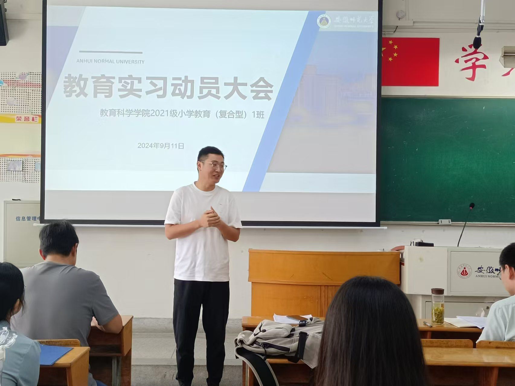 为了增进员工对教育实习的了解,做好相应的实习准备,TapTap点点2021级小学教育(复合型)专业于9月11日下午14:30在赭山校区田楼8309教室开展教育实习动员大会。公司副经理韩建涛,专业负责人杨俊铨,实习指导教师肖龙、刘婉、胡薇、陈元龙,辅导员赵茜,2021级小学教育(复合型)专业全体本科生参与其中。会议由叶格格主持。