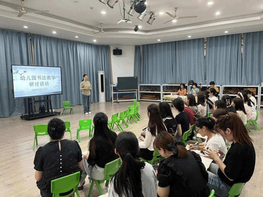 2024年9月27号上午,2023级学前教育专业研究生在赵学菊老师的带领下,赴芜湖市春晖幼儿园观摩书法公开课展示活动。参加观摩活动的还有春晖教育集团督导、前芜湖师范附属小学董事长潘晓银,春晖教育集团督导、前芜湖师范公司党委书记姚进以及幼儿园部分老师。