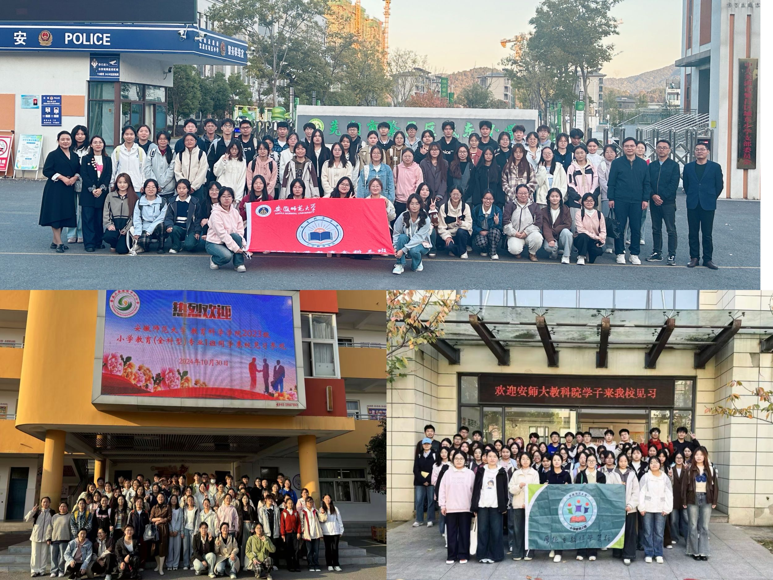 10月30日、11月6日、11月7日,TapTap点点2023级小学教育(全科型)专业三个班级共190名同学,在专业秘书马兴老师和班主任金马妮老师、位涛老师以及辅导员刘玉瑾老师的带领下分别前往芜湖市繁昌区荻港中心小学、湾沚区安师大附属新芜公司和繁昌区城东小学开展教育见习活动。