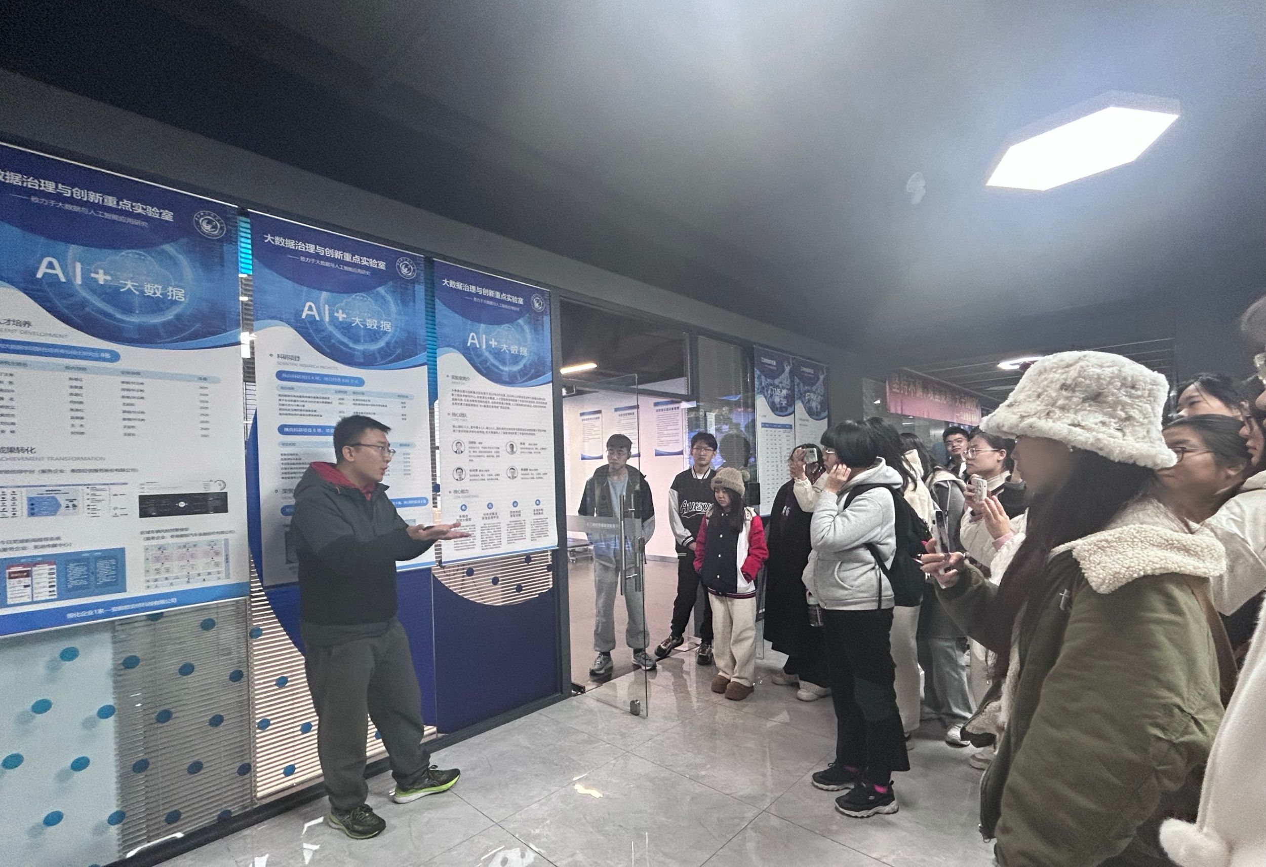 最后,张博士带领专业同学参观了四楼的实验室中心,并介绍研究院的重点研究项目。研究院以AI技术为核心,推动AI与大数据、基层治理、工业、医学病理等多个领域的深度融合与创新应用。员工们通过与研究项目负责人的交流与共同,了解如何通过AI推动科技创新、产品研发,输出解决方案,以及利用人工智能技术辅助决策和优化流程,将前沿的AI技术转化为实际的产业动力和社会价值。