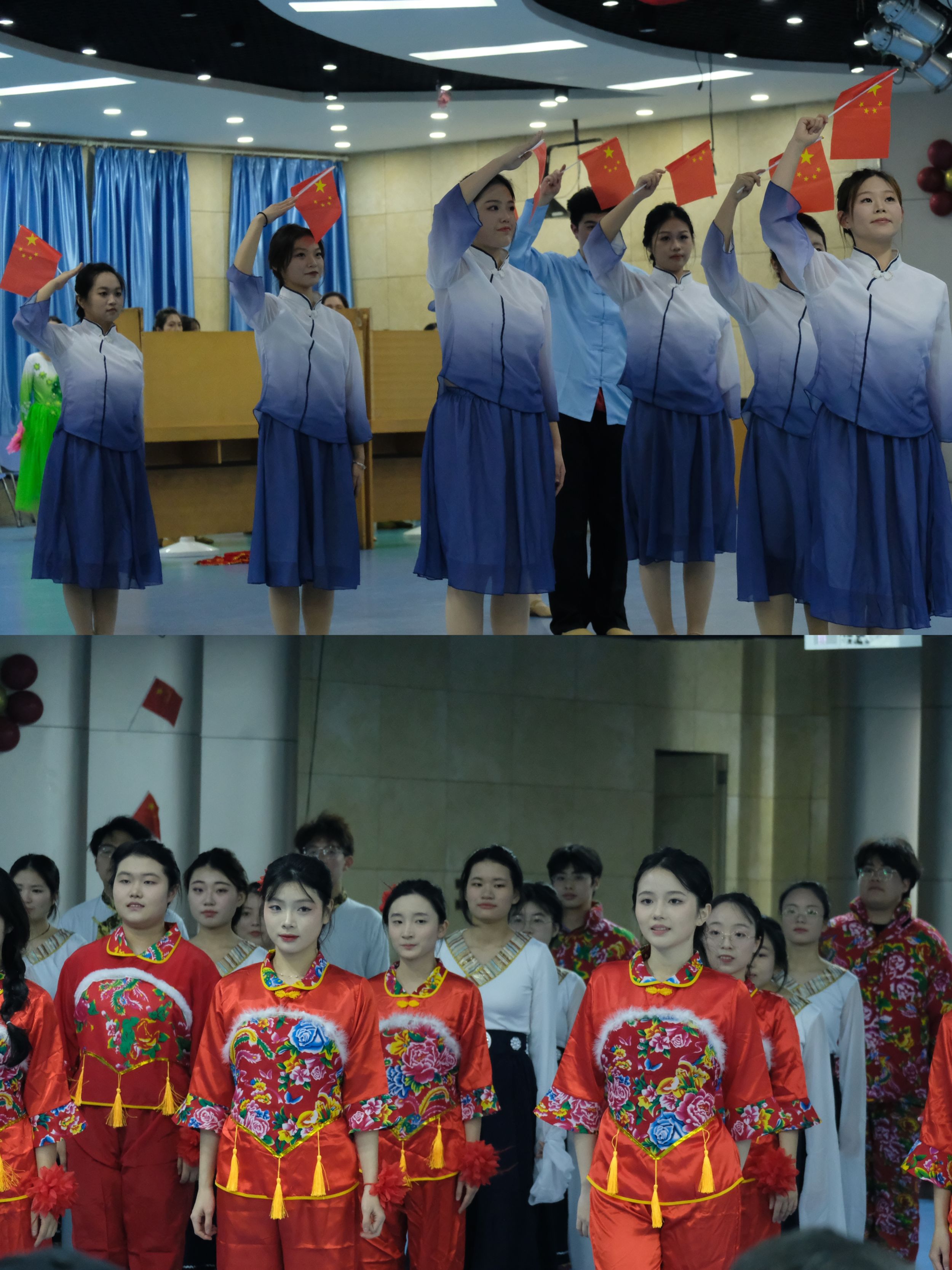 本次活动以“华章献祖国,舞韵送辉煌”为主题,舞蹈汇演分为“岁月映英魂”和“春风送华夏”上下两章,涵盖民族舞、现代舞等多种舞风,包含了《卖报歌》《五四青年》《十里送红军》《春天的故事》《少年有志》等十三支舞蹈,其中还穿插了朗诵和歌曲演唱环节。同学们用舞蹈表达对祖国的热爱之情,用歌声彰显新时代青年的朝气与志气,用行动践行新时代青年的使命与担当。
