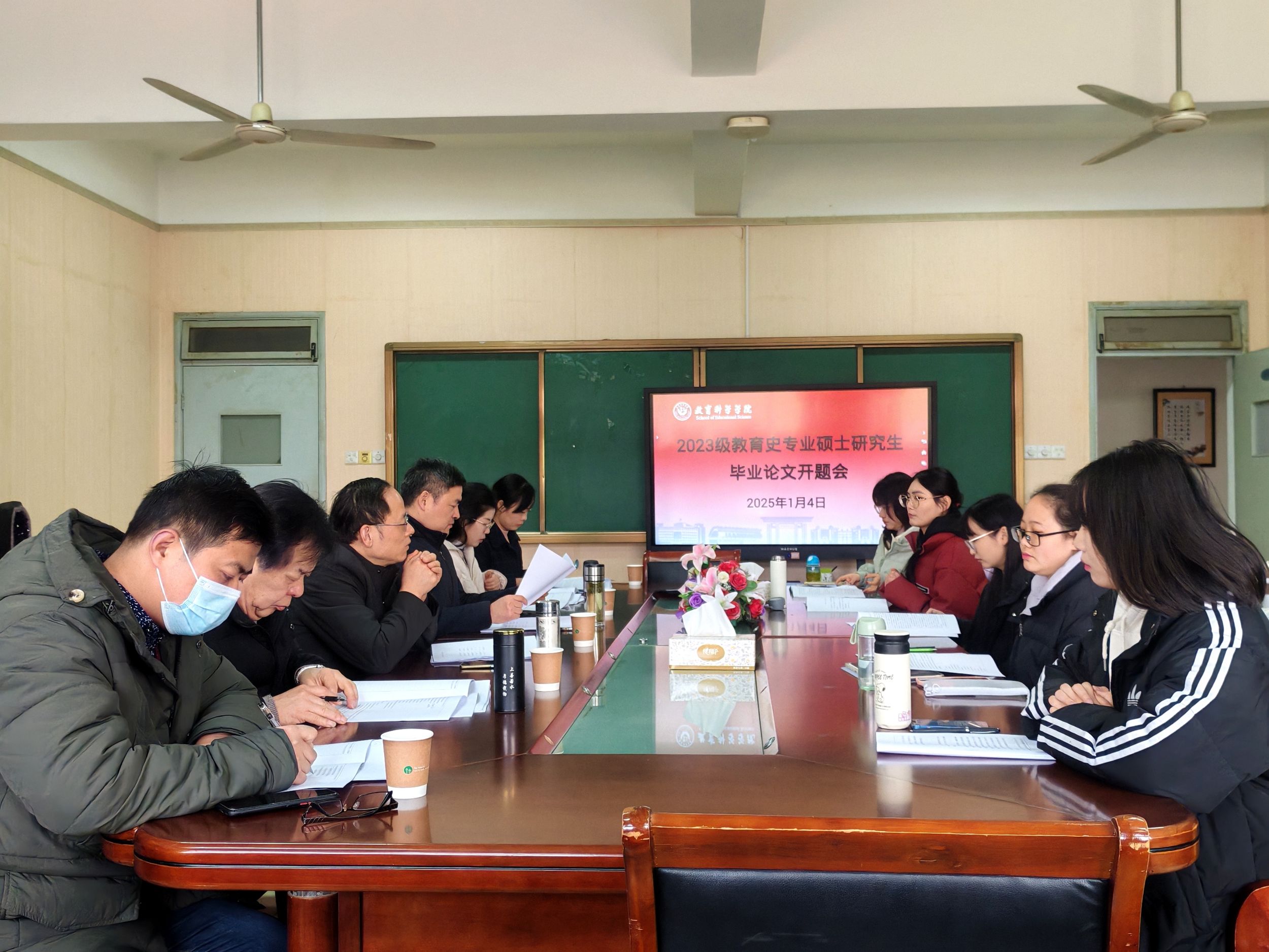 2024年1月4日下午,2023级教育史专业硕士研究生毕业论文开题报告会在公司408会议室召开,孙德玉、李宜江、姚运标、杨俊铨、刘婉、苏明明等老师担任评审专家,会议由孙德玉老师主持。除参与本次开题的硕士研究生外,2024级教育史专业硕士研究生与部分本科生旁听。