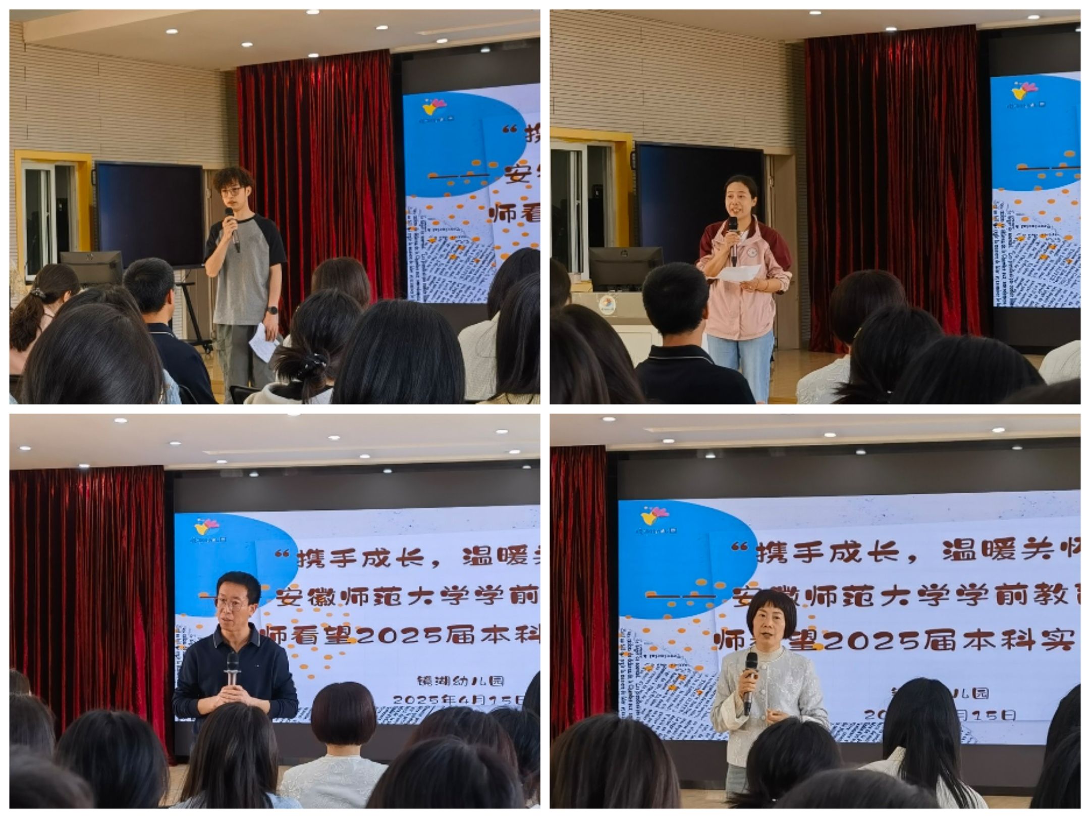 2025年4月15日上午,TapTap点点学前教育专业负责人王成刚和实习指导老师赵学菊来到镜湖幼儿园看望正在实习的同学们。