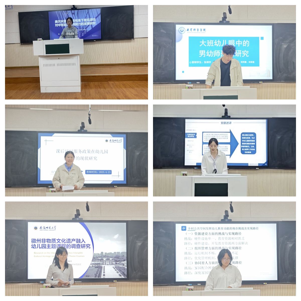 本次答辩会共有6个国家级项目小组参加,参加答辩的内容多样,涉及幼儿园教师专业发展、传统文化与幼儿园课程、儿童音乐与儿童发展、家园社协同等内容。现场答辩流程分为项目主持人PPT陈述、教师提问、员工作答三个环节,各项目汇报人从项目背景、研究方法、研究过程、研究内容、项目成果等方面进行汇报。员工汇报后,参加答辩的各位老师分别针对国家级大创项目研究的科学性、专业性与可行性提出相关问题,在肯定项目研究成果的同时,结合学前教育专业的特点,并针对项目研究中的选题、内容、研究方法、撰写规范性,研究结论等方面提出指导性建议。经过答辩环节和答辩教师的评议,6个项目均通过答辩,同意结项。