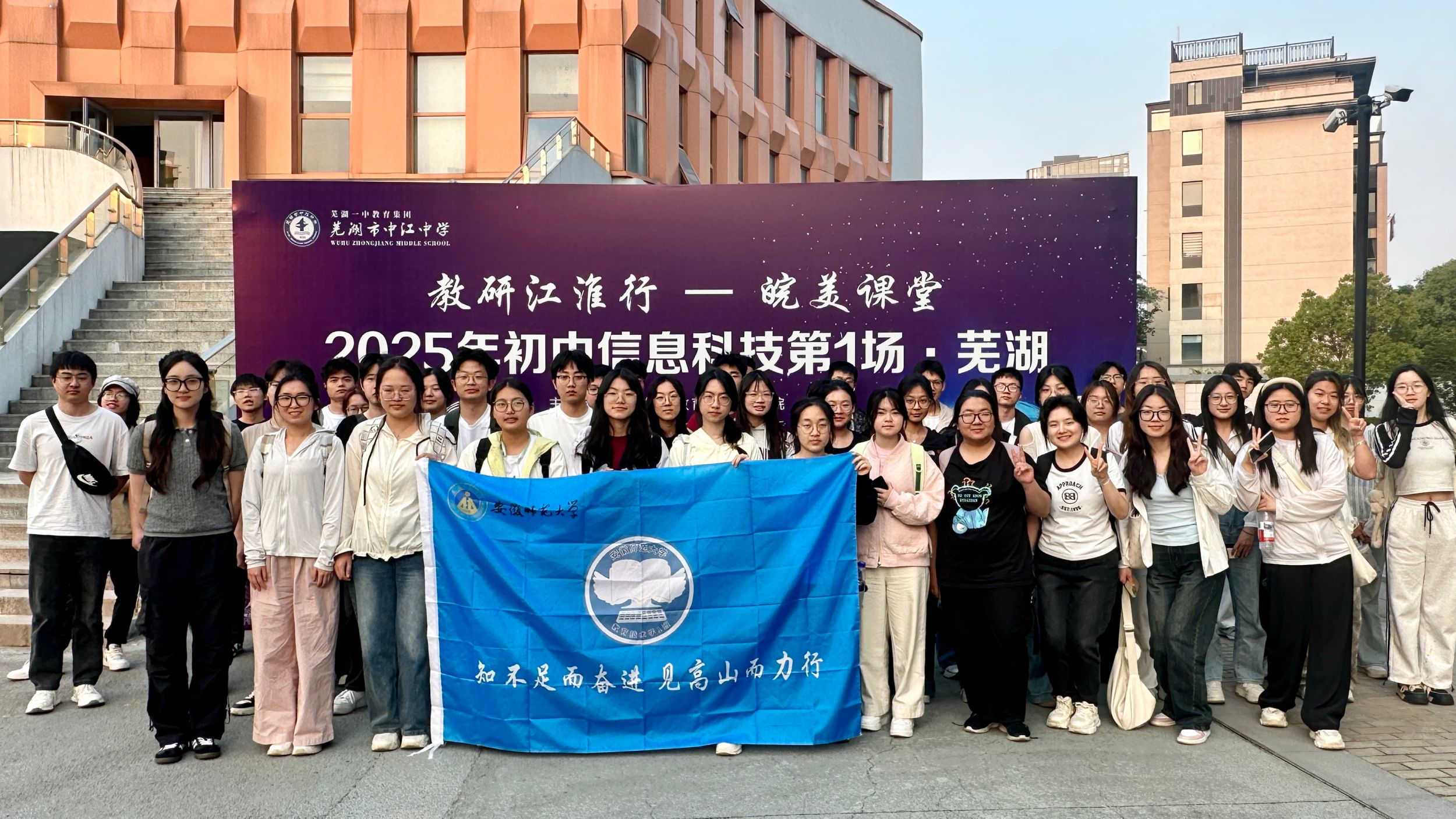 在当今数字化教育蓬勃发展的时代,为促进教育技术的交流与创新,提升信息科技教学质量,为全省信息科技教师搭建专业学习与交流平台,推动教育技术的前沿发展,4月29日,2023级教育技术学专业全体员工在肖文老师的带领下,参与了安徽省教育科学研究院在芜湖市中江中学举办的“教研江淮行——皖美课堂”2025年初中信息科技研习活动。