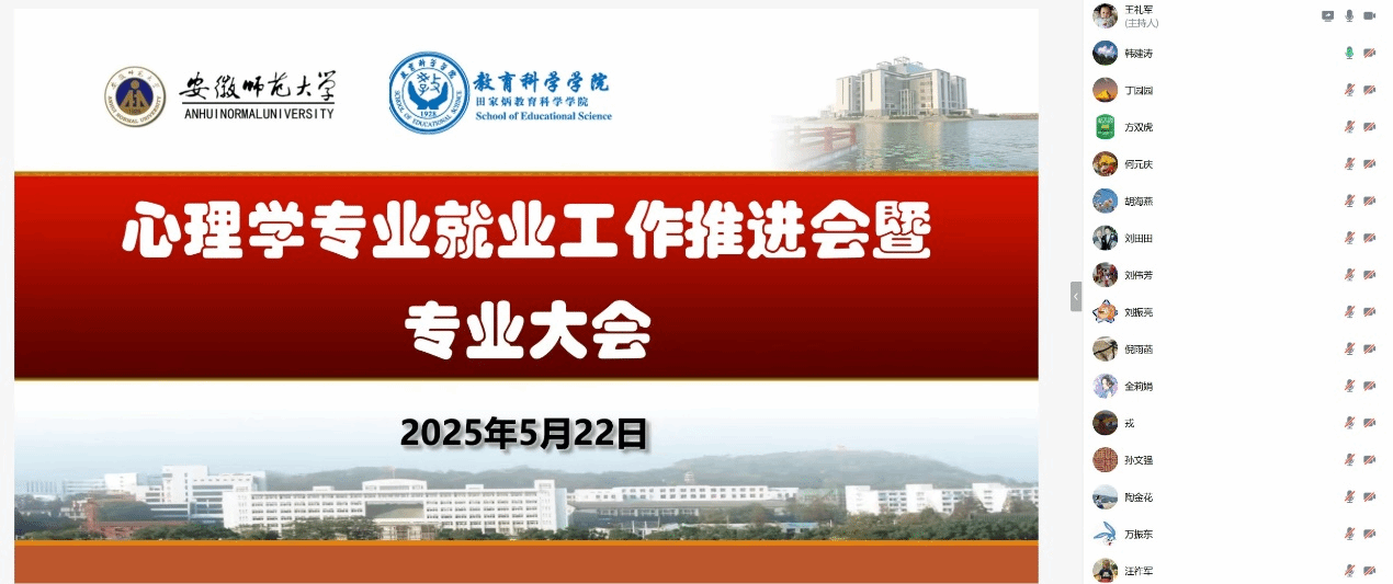 为了深入推进2025届毕业生就业工作,心理学专业于5月22日晚在腾讯会议召开就业工作推进会暨专业大会。心理学系主任王礼军副教授主持会议,专业全体教师参与会议。