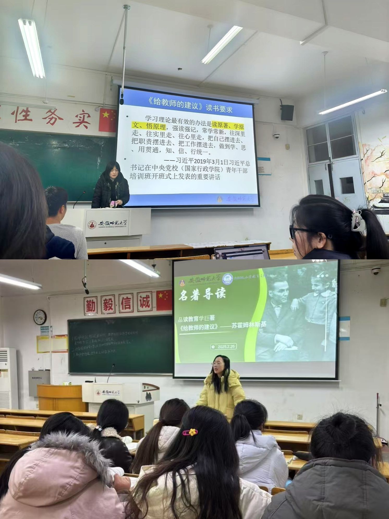 本次名著导读研习聚焦于苏霍姆林斯基的经典教育著作《给教师的建议》。活动伊始,专业教师为同学们深入介绍了苏霍姆林斯基的教育思想及其在世界教育领域的深远影响,帮助同学们理解其著作的背景和价值。在专业教师对苏霍姆林斯基教育思想的深度解读与经验分享中,研习活动正式拉开帷幕。