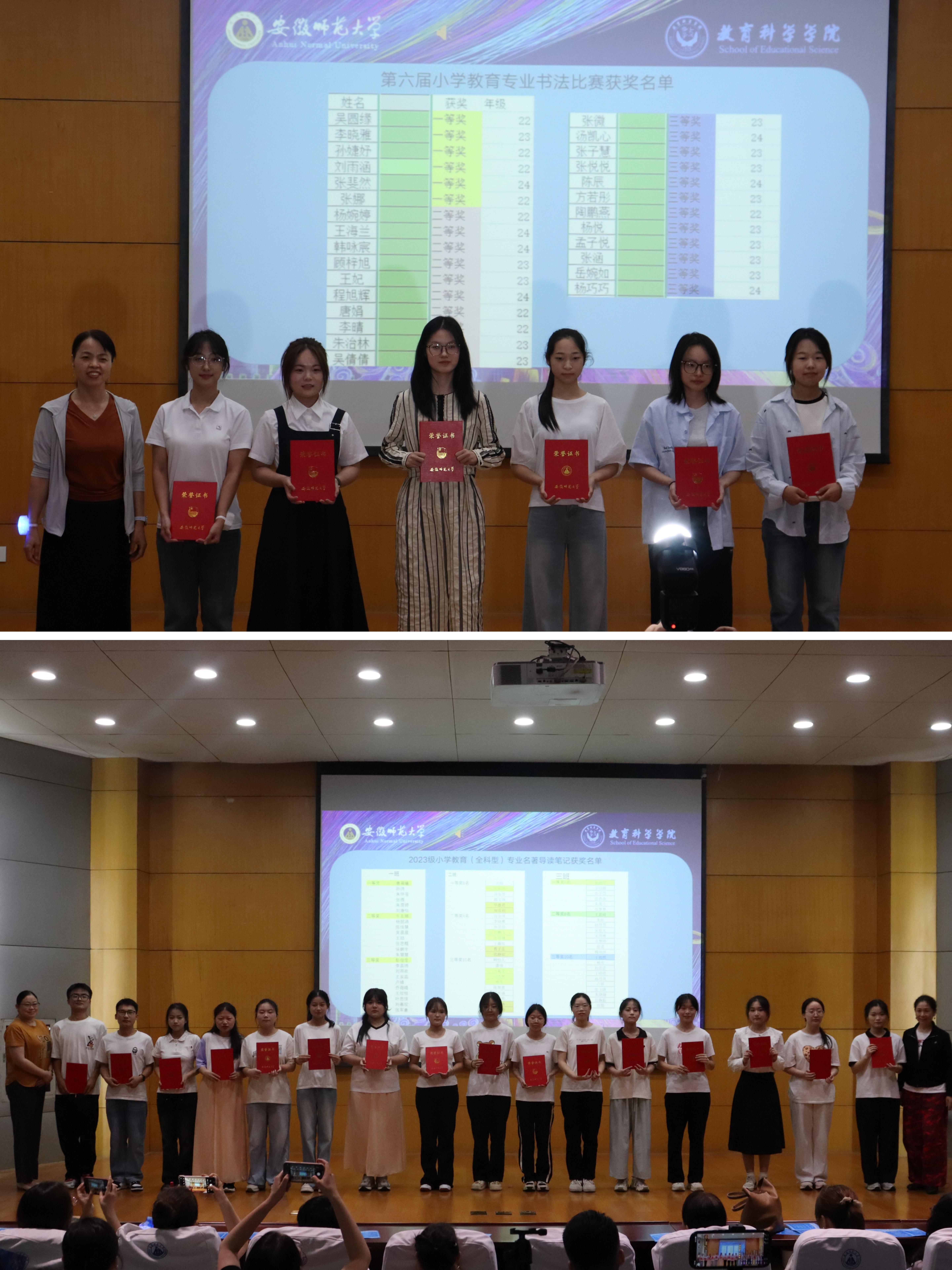 活动特别安排了激动人心的颁奖环节。在热烈的掌声中,小教专业第六届书法比赛和名著导读笔记评选获奖的员工走上领奖台,接受属于她们的荣耀。获奖学子们手捧证书,脸上洋溢着自豪与喜悦的笑容。这一刻的荣光,是对过往努力的肯定,更是对未来征程的鼓舞。