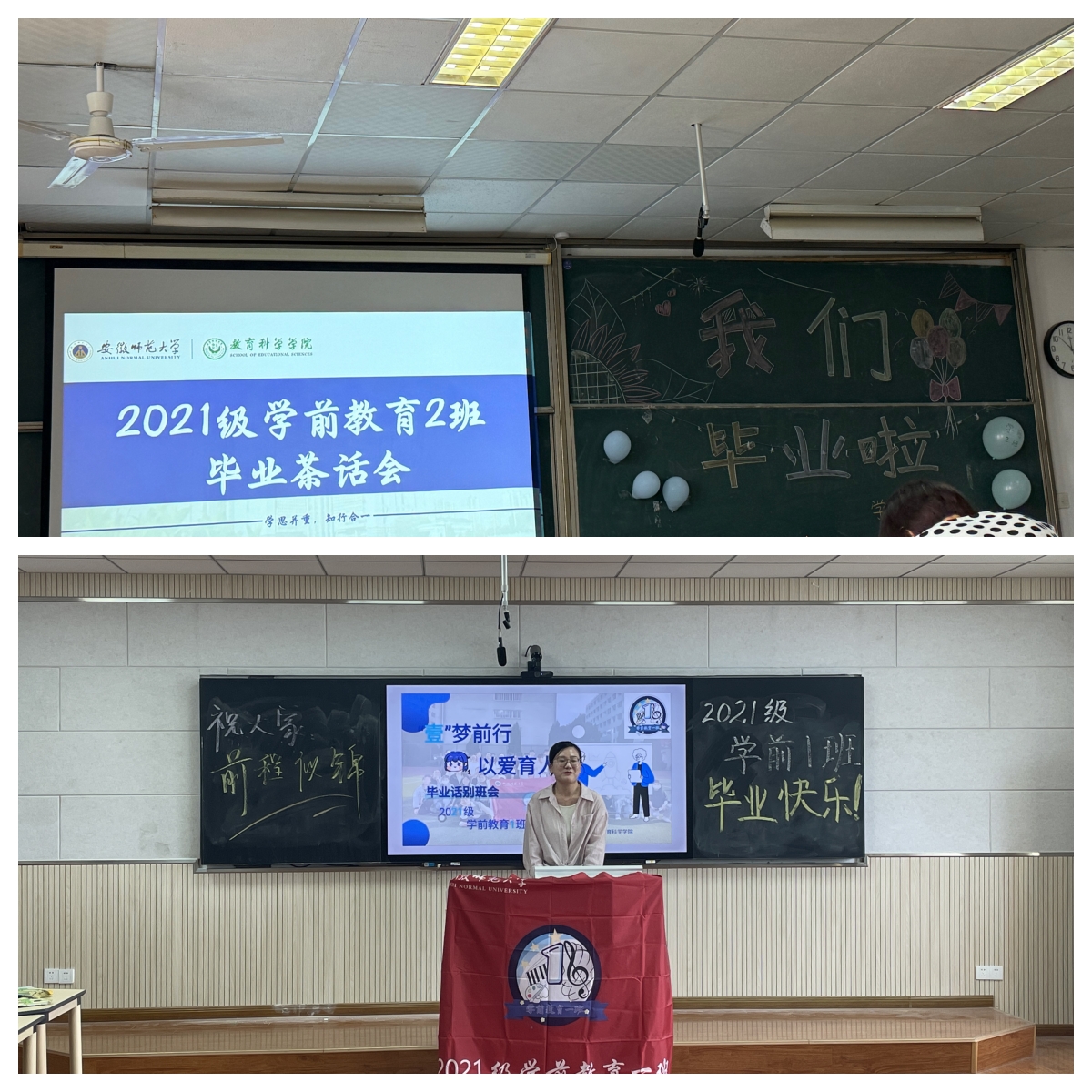 依依惜别母校情,踌躇满志赴新程。6月10日与6月12日下午,2021级学前教育两个班级在田楼8603教室分别举行温馨而庄重的毕业师生话别会。教师代表吴玲、赵学菊、陈海燕、张志华、李晓博、翟清华、王芬莲、王萍老师及辅导员赵茜与毕业生共叙情谊、畅谈未来。活动分别由两个班班长主持。